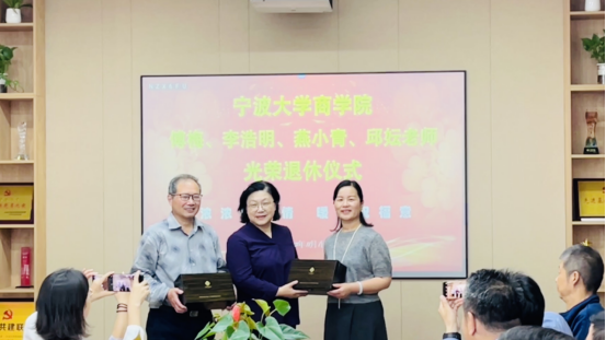 11月1日下午, 91沈先生 在曹光彪楼党员之家为2023年退休的傅梅、李浩明、燕小青、邱妘四位老师举行荣休仪式。学院全体党政领导班子及教务办、金融系、会计系的教师代表参加仪式。仪式由党委书记史宏协主持。