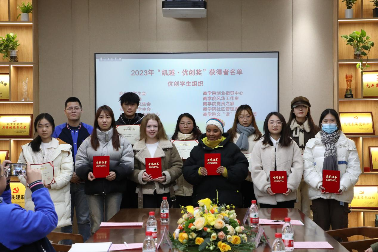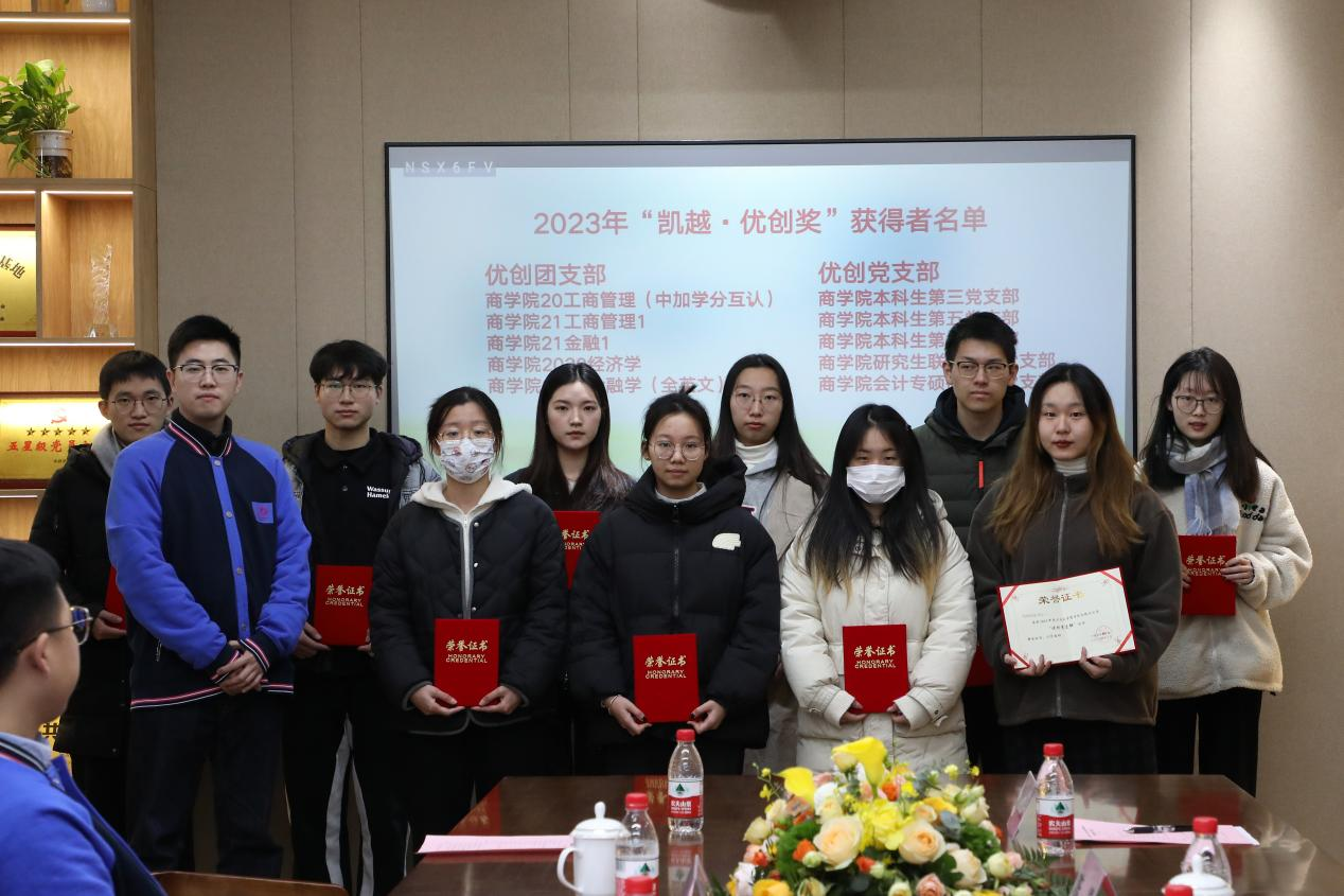 12月21日下午,91沈先生 2023年“凯越·优创奖”颁奖仪式暨“凯越奖学金”签约仪式在91沈先生 党员之家举行,凯越集团总裁助理朱吉,凯越集团人事部副经理王忠宇,凯越集团人事部经理助理戴陟遥, 91沈先生 党委书记史宏协,党委副书记韩雯琛,91沈先生 校友办陈煜, 91沈先生 学工办主任陈彬, 91沈先生 辅导员孙健维、麦尔阿巴以及获奖学生团队代表等40余名师生出席本次活动。