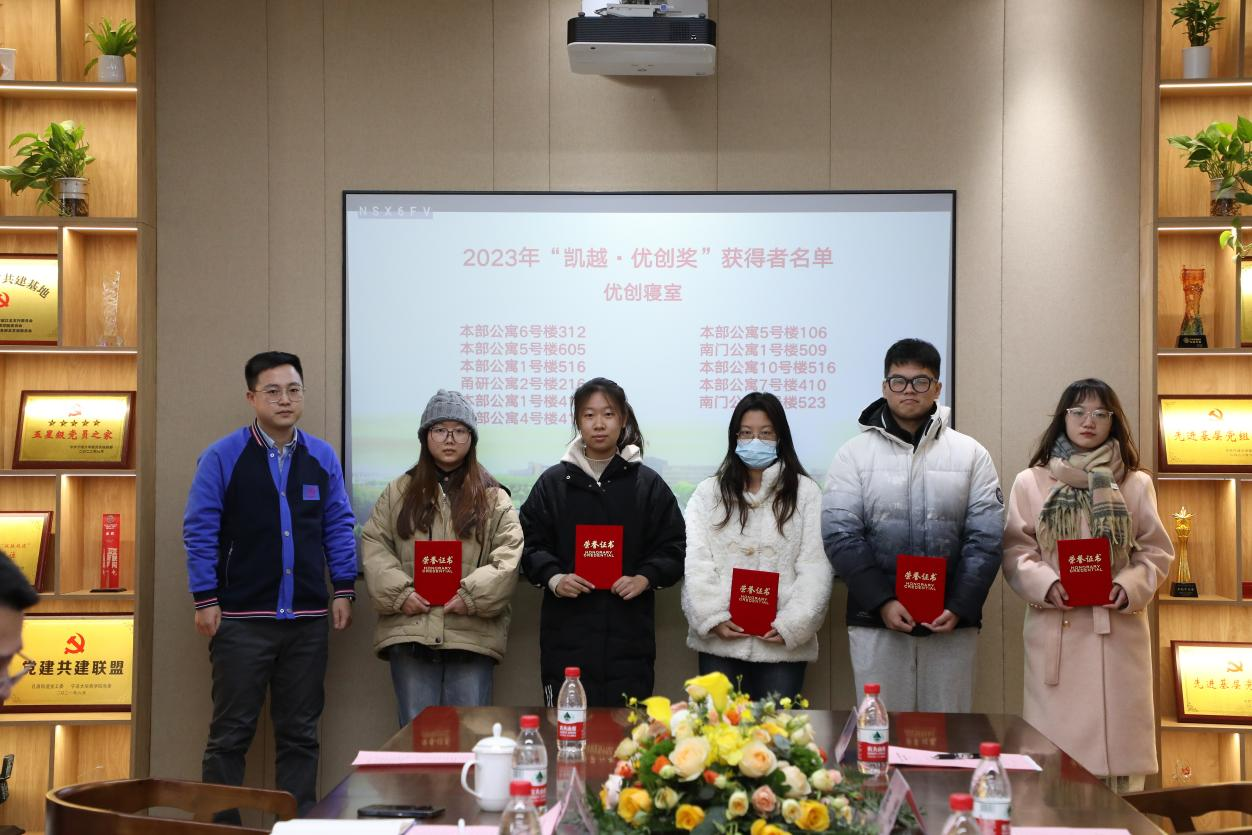 活动开始前,主持人简单介绍了本次活动举办的目的以及“凯越·优创奖”和“凯越奖学金”项目概况。由韩雯琛副书记宣读2023年“凯越·优创奖”获奖名单,本次获奖名单中包含优创学生组织,优创党、团组织,优创寝室等,旨在全方位奖励品学兼优的学生团队。