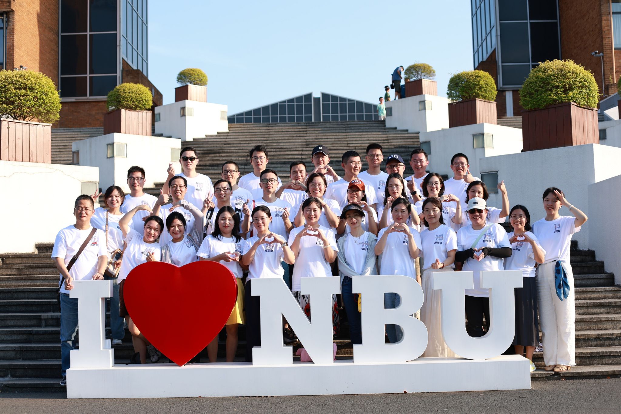 主题班会结束后,校友们身着班服,集体参观了学院大楼、南天门、南大门、大草坪、千年橄榄树、白鹭林、图书馆、宿舍楼,并在校园打卡点一一合影留念。