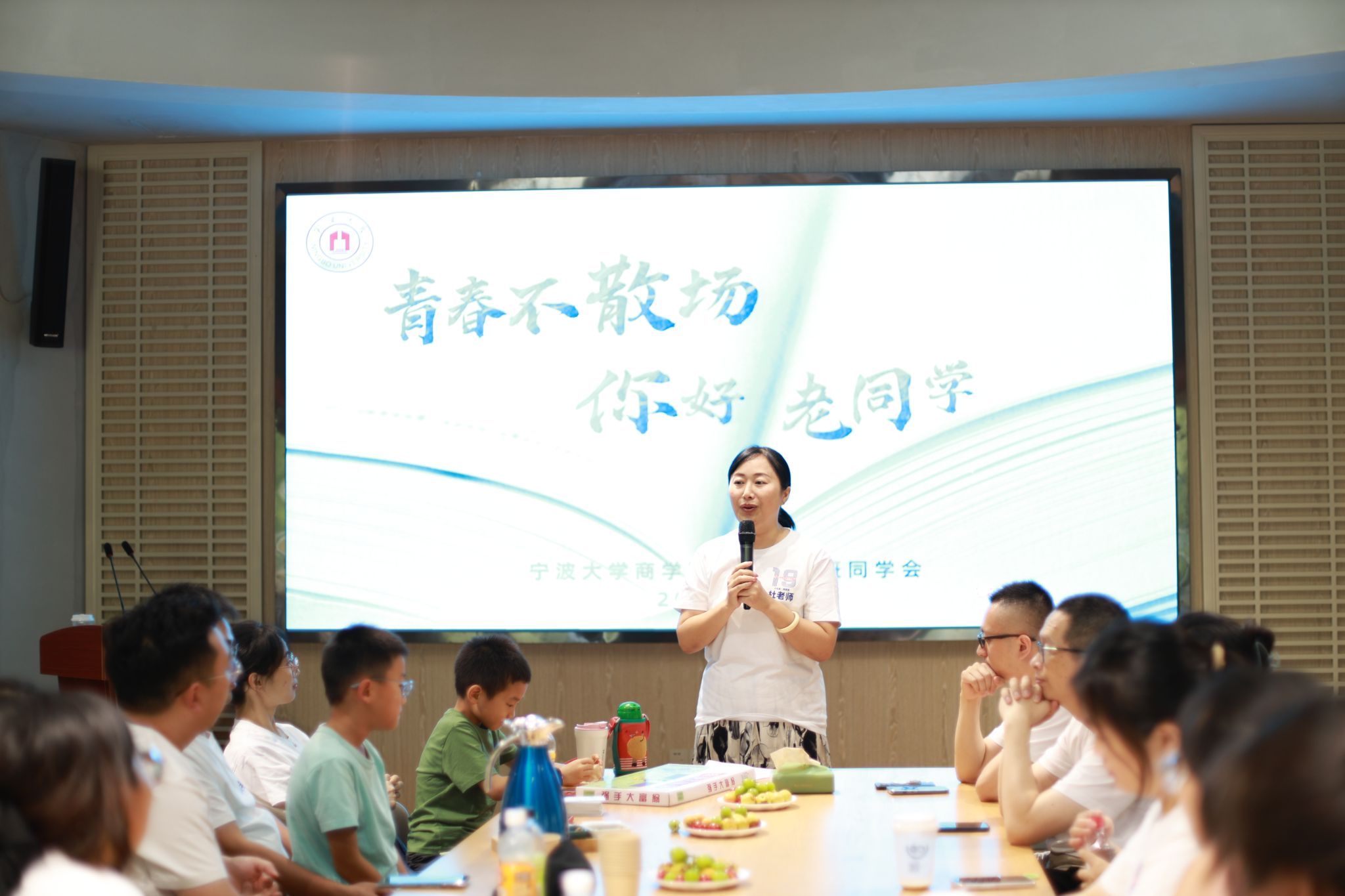 当天下午,在学校校友之家召开“青春不散场,你好老同学”主题班会上,杜琳致开篇词。发言中,她欢迎校友们返校重聚,为大家送上美好祝福,并回忆了过往的点滴。随后,与会校友逐一介绍了自己毕业后的奋斗历程和成果,共同回忆了四年难忘的大学时光,向母校表达了感激之情。最后,朱福建围绕师资队伍、专业建设、学科科研、人才培养等方面介绍了学校和学院近况,并为大家带来了“宁大版的增广贤文——大学人生12条箴言”精彩课程。校友们重返课堂,聆听师音,感受颇深。