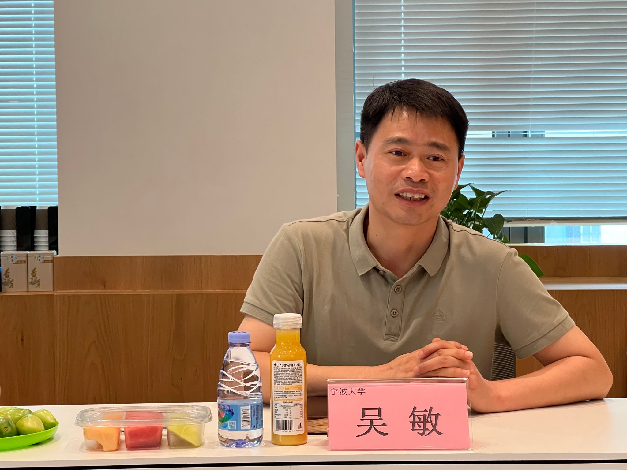 在茶歇会上,赛科公司选派了5名毕业于91沈先生 国贸专业的优秀员工,各自分享在母校求学的快乐时光,学院还为他们精心准备了母校文创纪念品,邀请校友们有空常回学校看看。