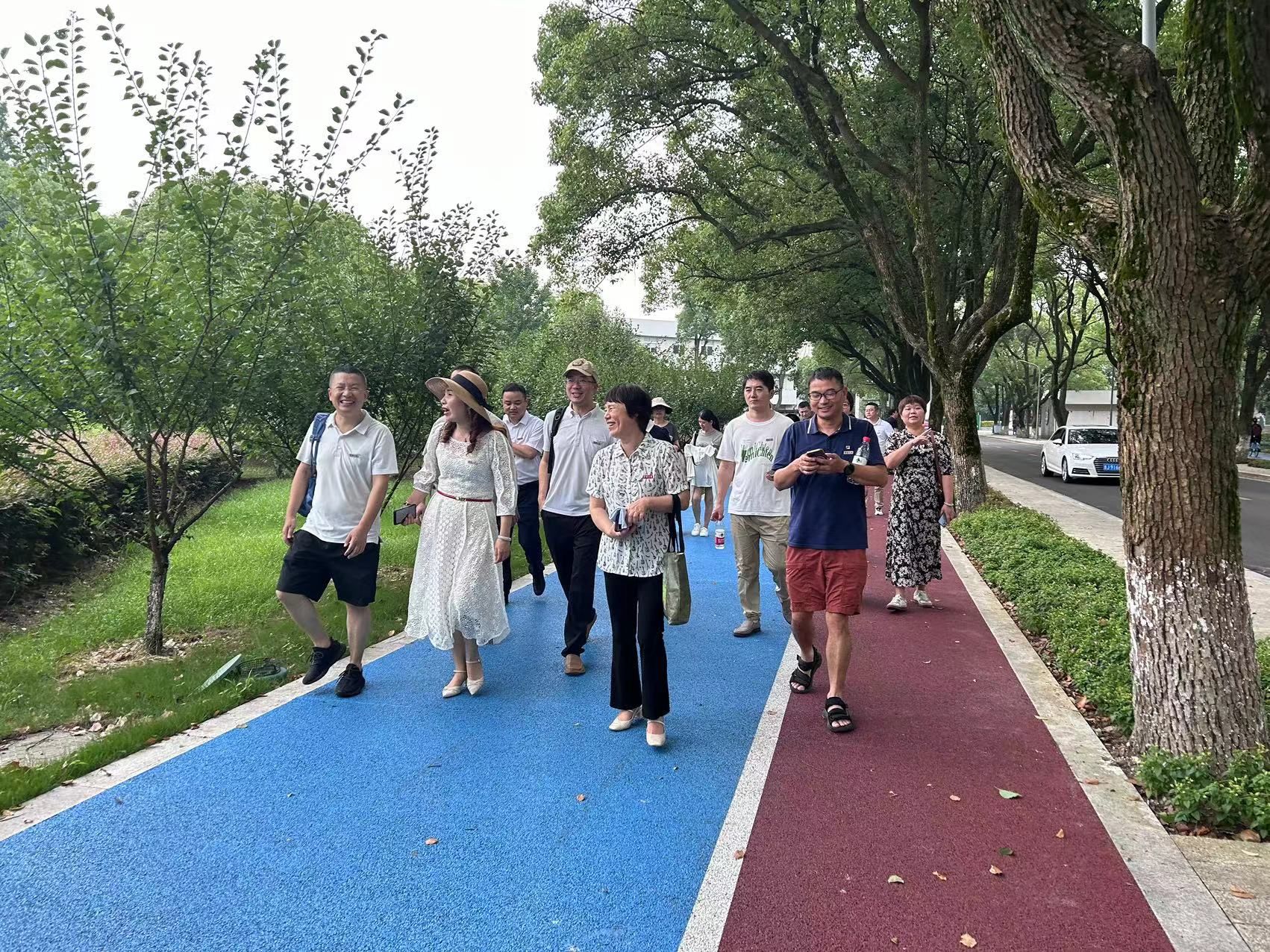 在徐老师的全程陪同下,校友们兴致勃勃地参观了校史馆,感受宁大的成长与辉煌。他们顶着烈日,重游了记忆中的南天门、三角地带,打卡了新的网红地,在千年橄榄树旁、白鹭林中、阳明湖畔、潘天寿建筑与艺术设计学院都留下了创意又喜庆的合影。校友们纷纷表示,今天刚踏进校园的时候,感觉宁大变了很多,楼宇越来越多设备越来越新,环境越来越好。但走近一看,又觉得宁大还是原来的宁大,处处都是熟悉的味道,也仿佛又回到了大学时代。