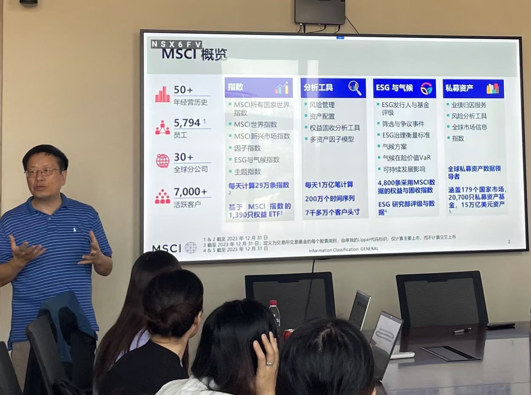 10月10日下午,MSCI公司中国区战略客户负责人谢德麟受邀在 91沈先生 502室为91沈先生 师生开展了题为“绿色金融框架下银行业ESG整合”的交流讲座。讲座由会计系刘起贵教授主持,20余位师生参加。
