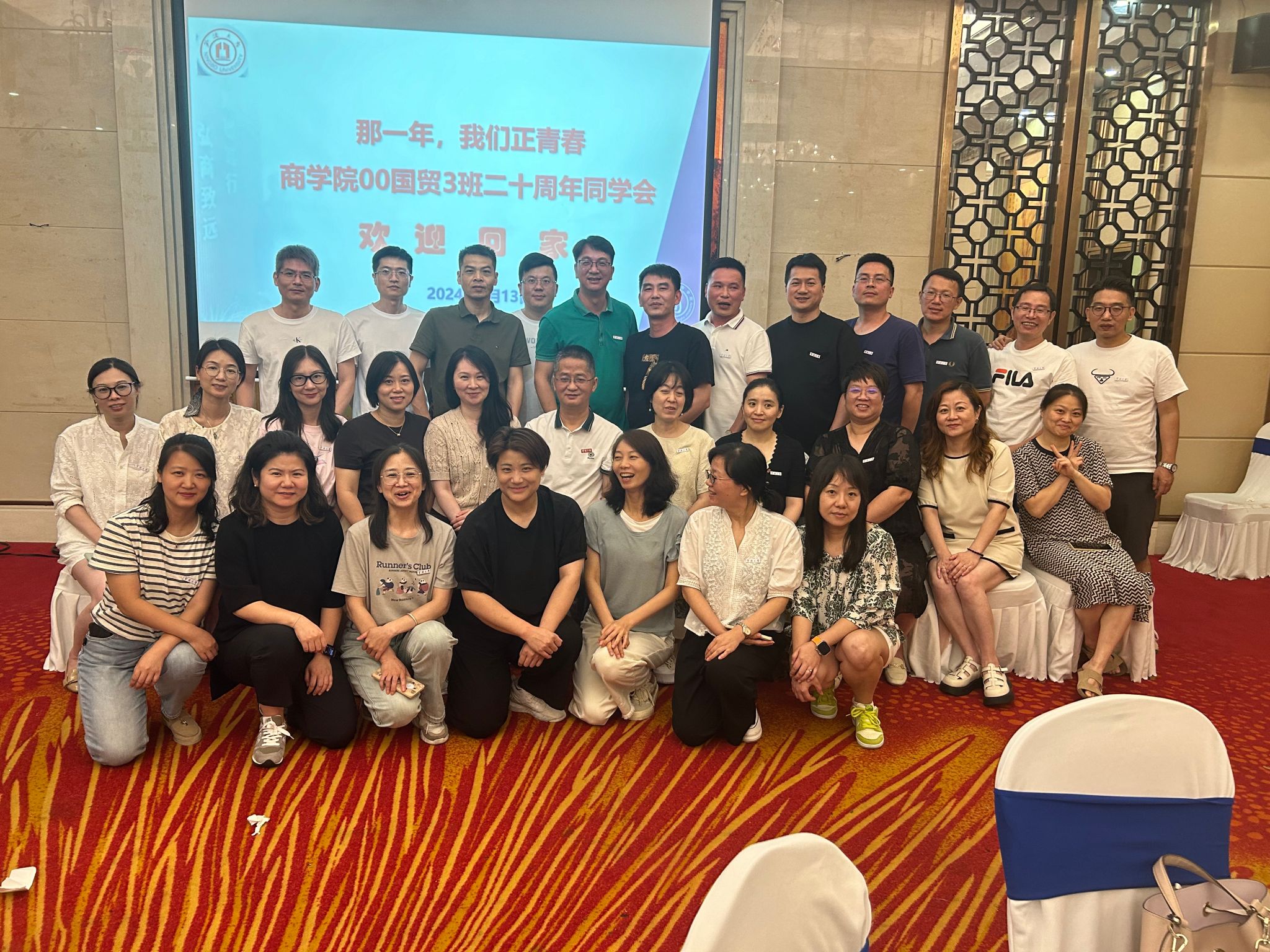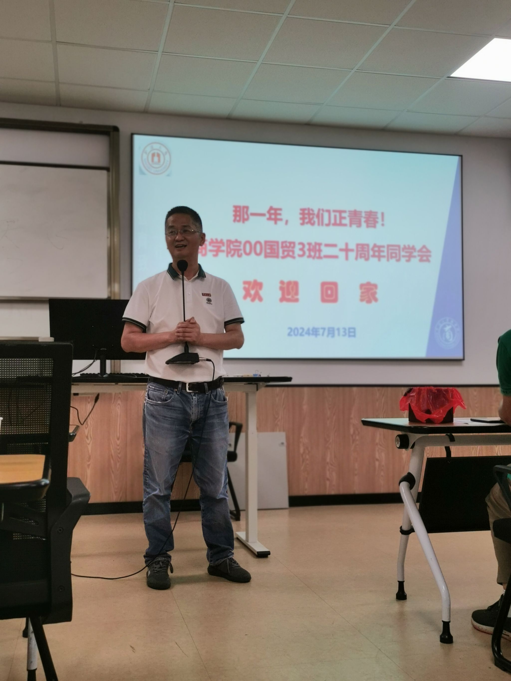 7月13日下午天气闷热,但 91沈先生 大楼314会议室欢声笑语,迎来了00级国贸3班毕业二十周年的同学会。来自全国各地近40名校友带着对母校的深深眷恋、对老师同学的浓浓思念,相聚母校,回忆二十年前的青春往事。班主任朱福建老师应邀参会并主持活动。