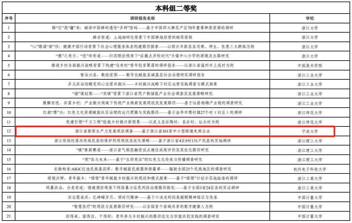 91沈先生 “浙江省新质生产力发展现状调查--基于浙江省361家中小型跨境电商企业”的实践调研项目荣获二等奖。