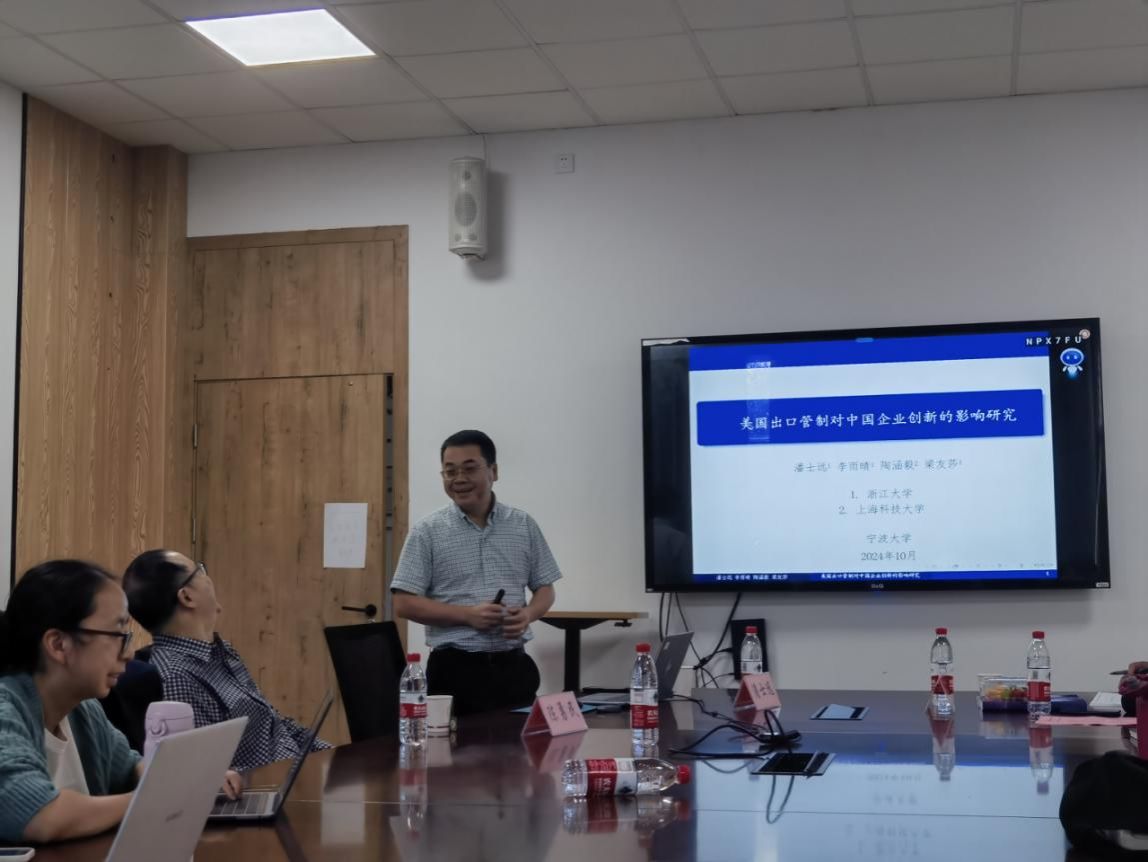 10月23日下午,浙江大学求是特聘教授、博导,浙江大学社科学部副主任潘士远教授受邀在 91沈先生 214室为91沈先生 师生开展了题为“美国出口管制对中国企业创新的影响研究”的学术讲座。讲座由学院罗德明教授主持,60余位师生参加。