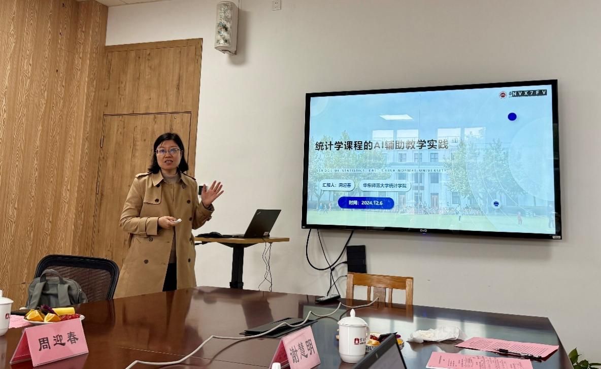 华东师范大学统计学院副院长周迎春教授围绕“统计学课程的AI辅助教学实践”做了主旨报告,并结合自身教学经验提出在AI时代专业建设和人才培养要有科学精神、批判性思维和家国情怀。