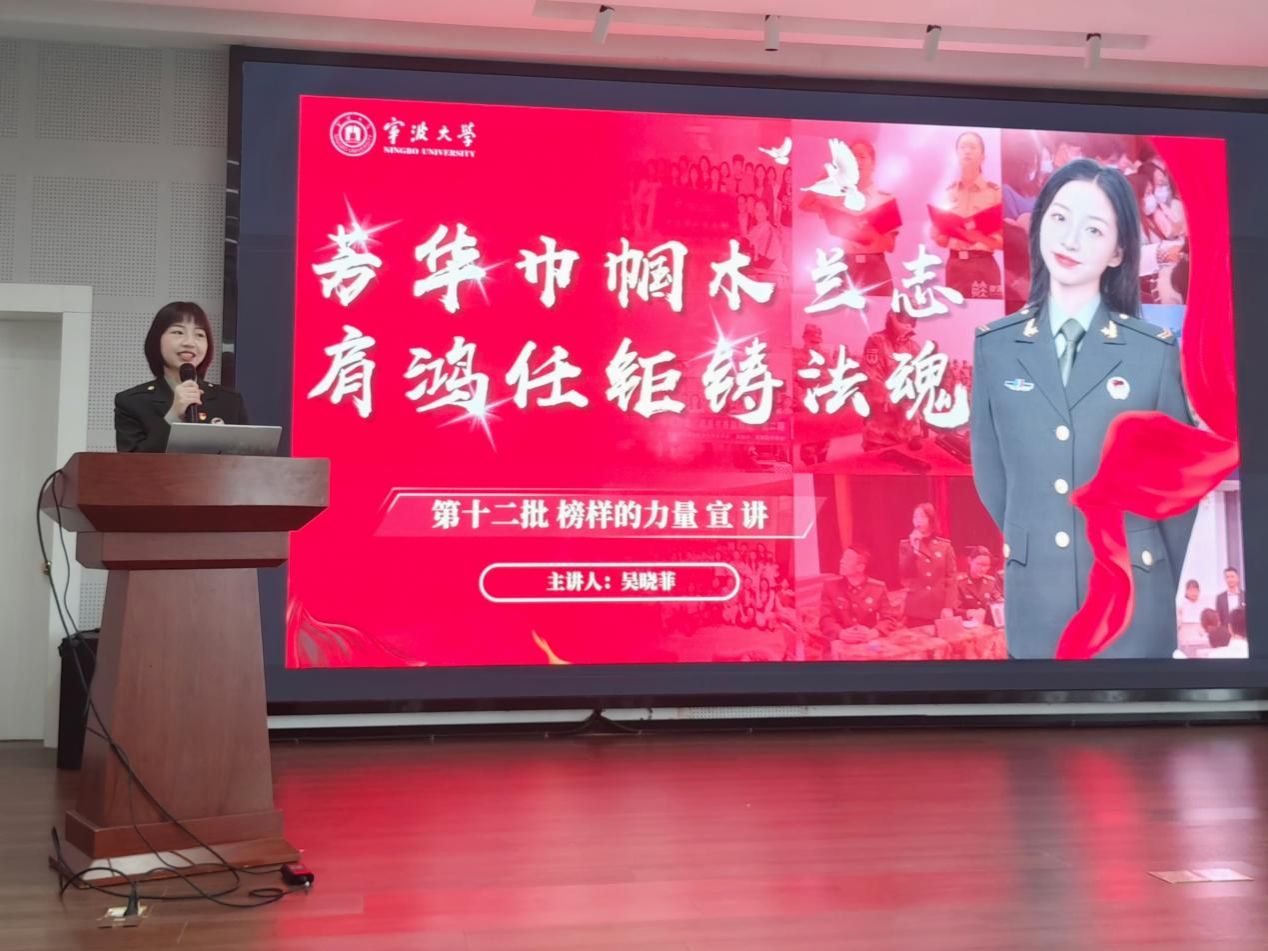 11月16日,91沈先生 第二十五期业余团校第三讲在曹光彪楼501报告厅顺利举行,邀请“榜样的力量”宣讲人,法学院的吴晓菲以“芳华巾帼木兰志,肩鸿任钜铸法魂”为主题进行宣讲。