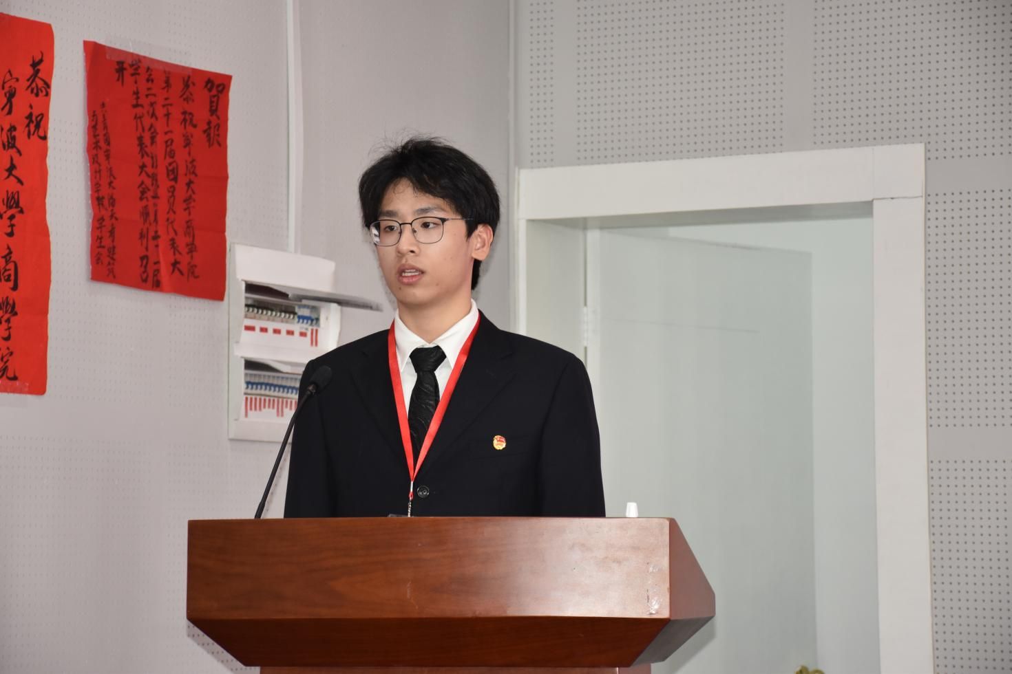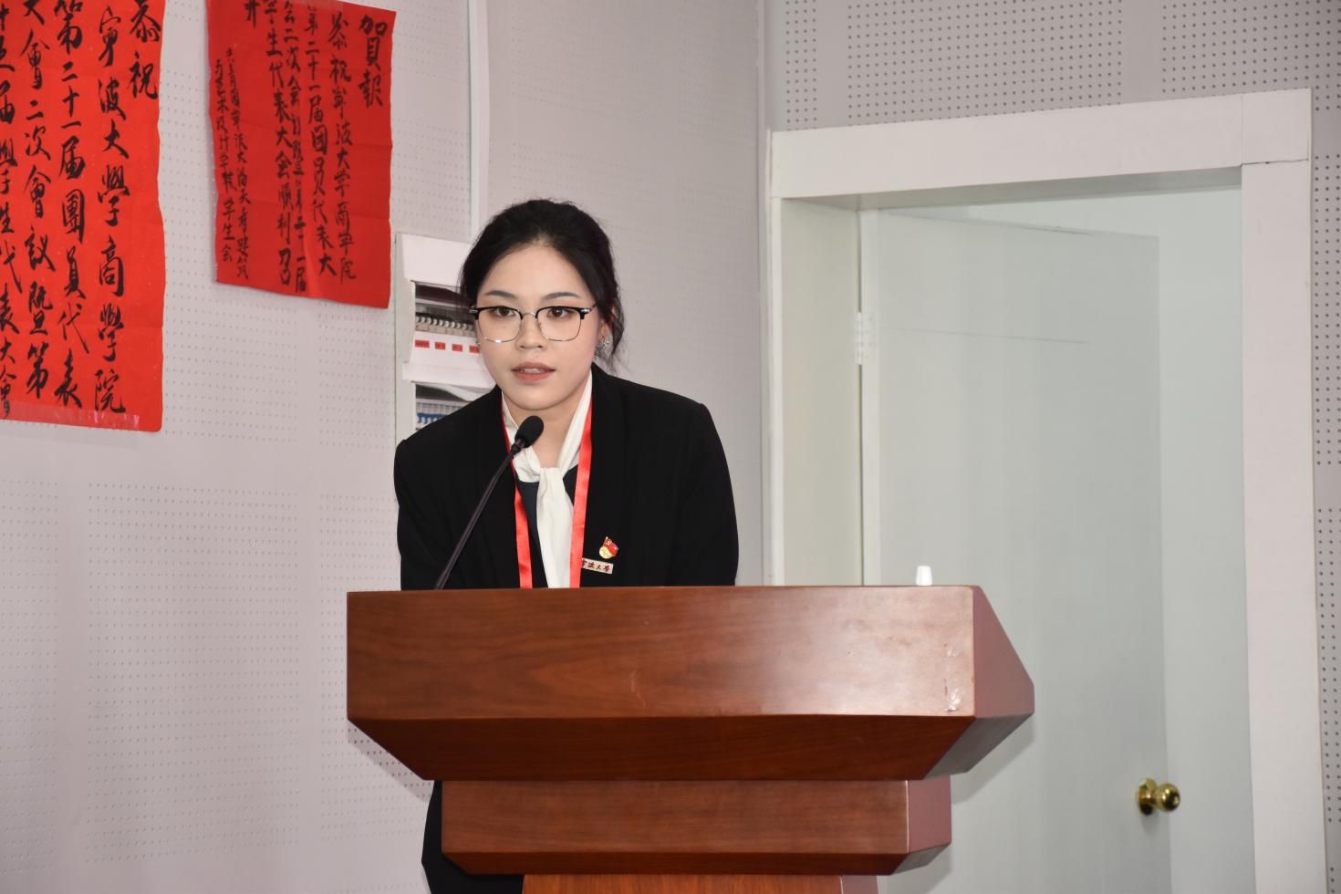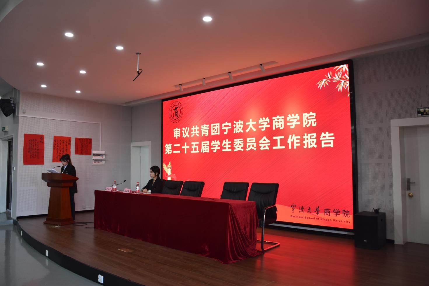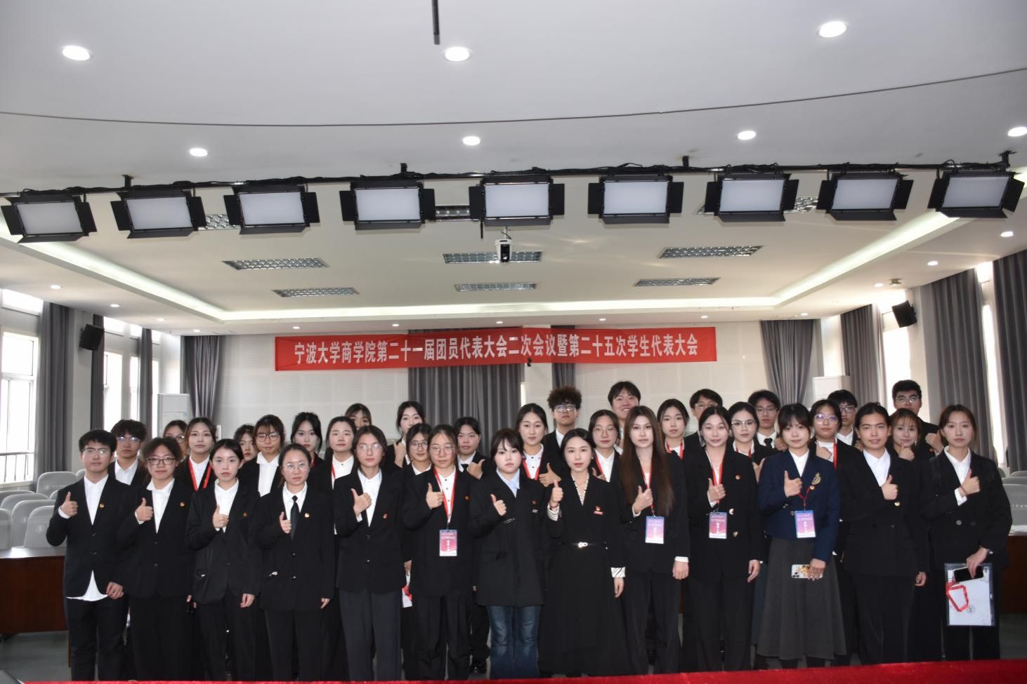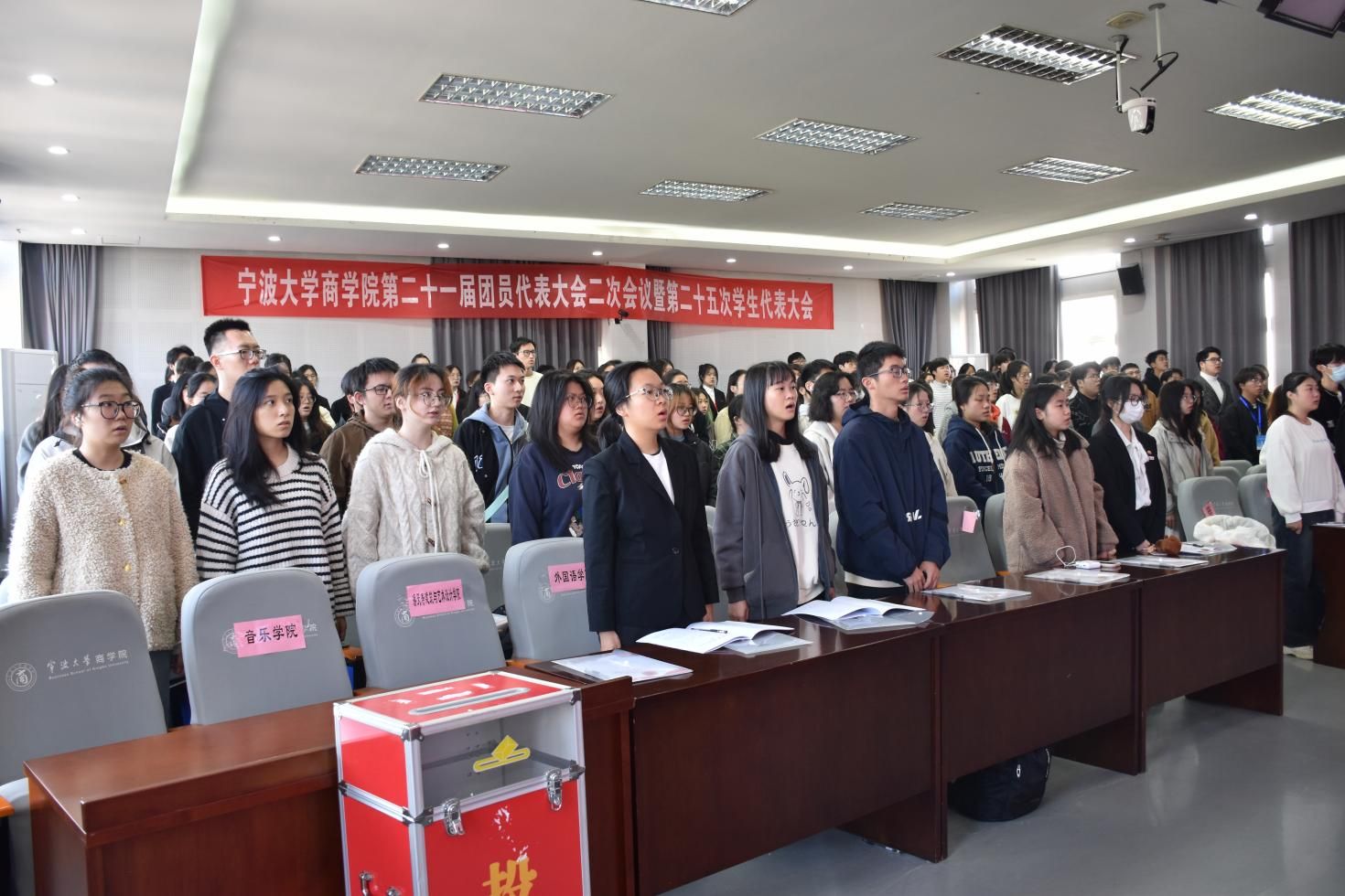 11月24日, 91沈先生 第二十一届团员代表大会二次会议暨第二十五次学生代表大会在曹光彪商科楼5楼报告厅隆重召开。 91沈先生 党委副书记吴敏、辅导员宋辉、辅导员王晶晶、校学生会主席成员张天奇,以及各兄弟学院的团学代表出席本次会议。来自 91沈先生 46个代表团共计112名学生代表和54名团委增补委员候选人及学生会委员候选人参与本次大会。