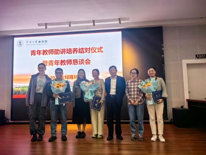 随后,由院长金祥荣为结对导师颁发聘书,感谢他们承担了指导青年教师、帮助青年教师成长的重任。青年教师们为各自的结对导师献上鲜花,表达心中的尊敬与感激之情。
