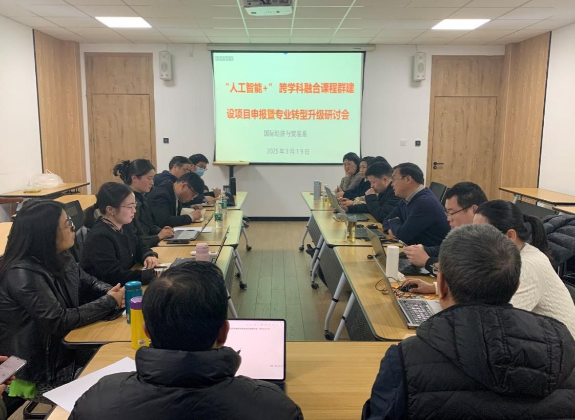 2025年3月19日中午,在曹光彪320会议室,国际经济与贸易系针对专业课程升级改造的现实要求,为更好地推动国际经济与贸易专业课程与人工智能、大数据、云计算、信息系统等的深度融合,召开全系教师研讨会。与会教师发言积极、气氛热烈,共同探讨未来国际经济与贸易专业课程的升级、转型、改造的方向、方式、内容等。此外,会议还邀请了智慧树公司的李康康和张佳佳,两位老师共同为国际经济与贸易系专业课程未来发展出谋献策。