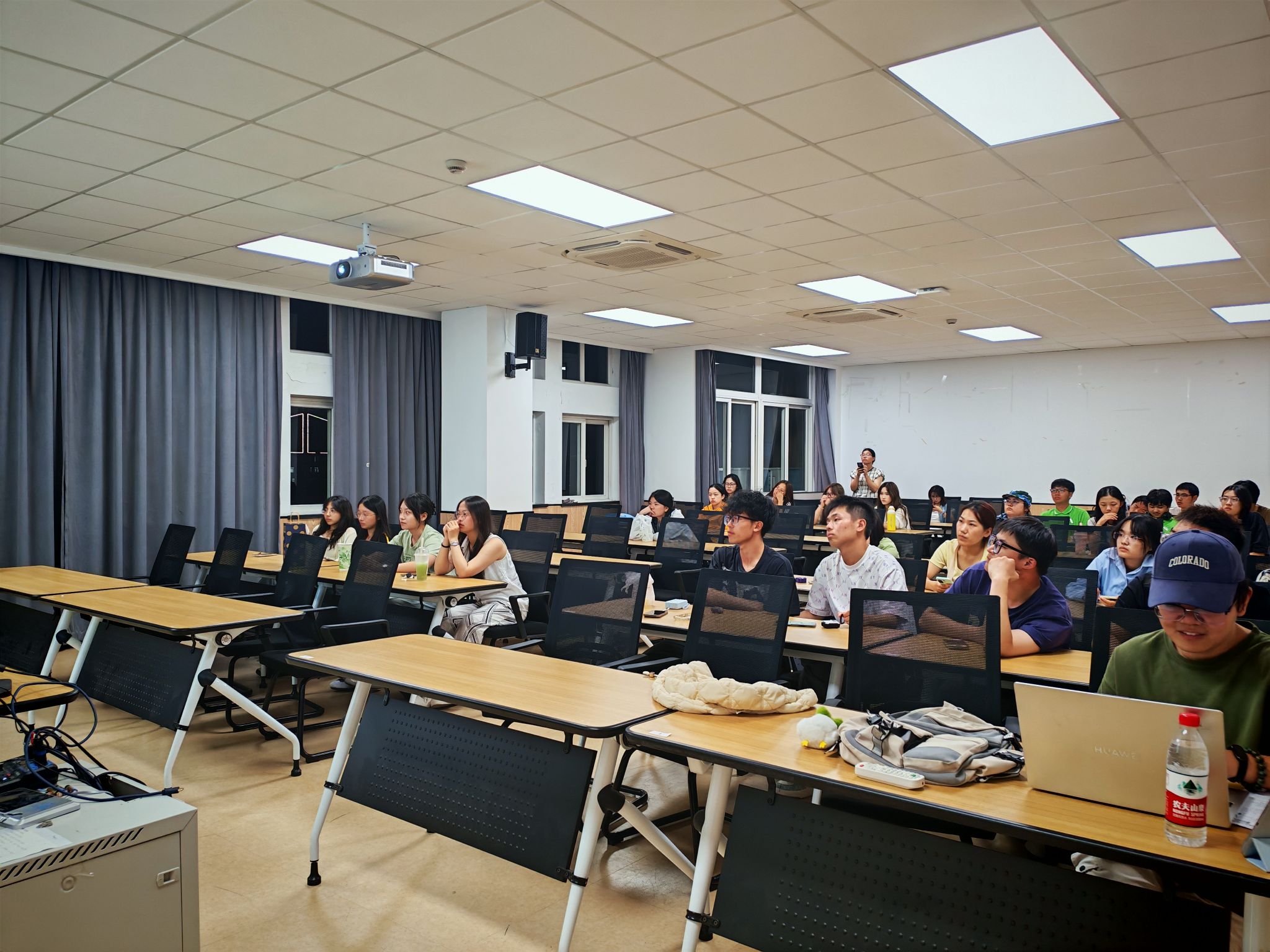 讲座过半,而同学们的热情并未停止,交流与讨论的声音盖过了热烈的掌声。同学们纷纷表示,本次宣讲讲座让他们对学校的竞赛有了更加清晰的认识,激发了他们的创新热情。