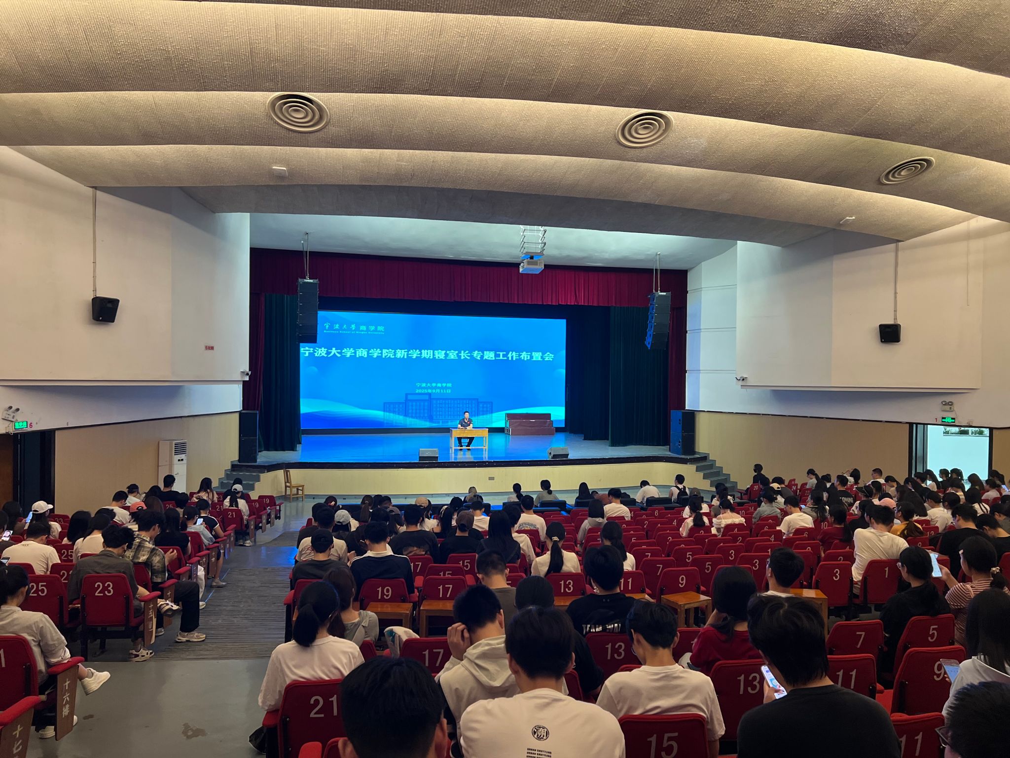 9月11日中午, 91沈先生 新学期寝室长专题工作布置会在校林杏琴会堂召开。院党委副书记吴敏,院社区管理委员会成员,全院619名寝室长均到场参会,会议由文明寝室辅导员应张磊主持。