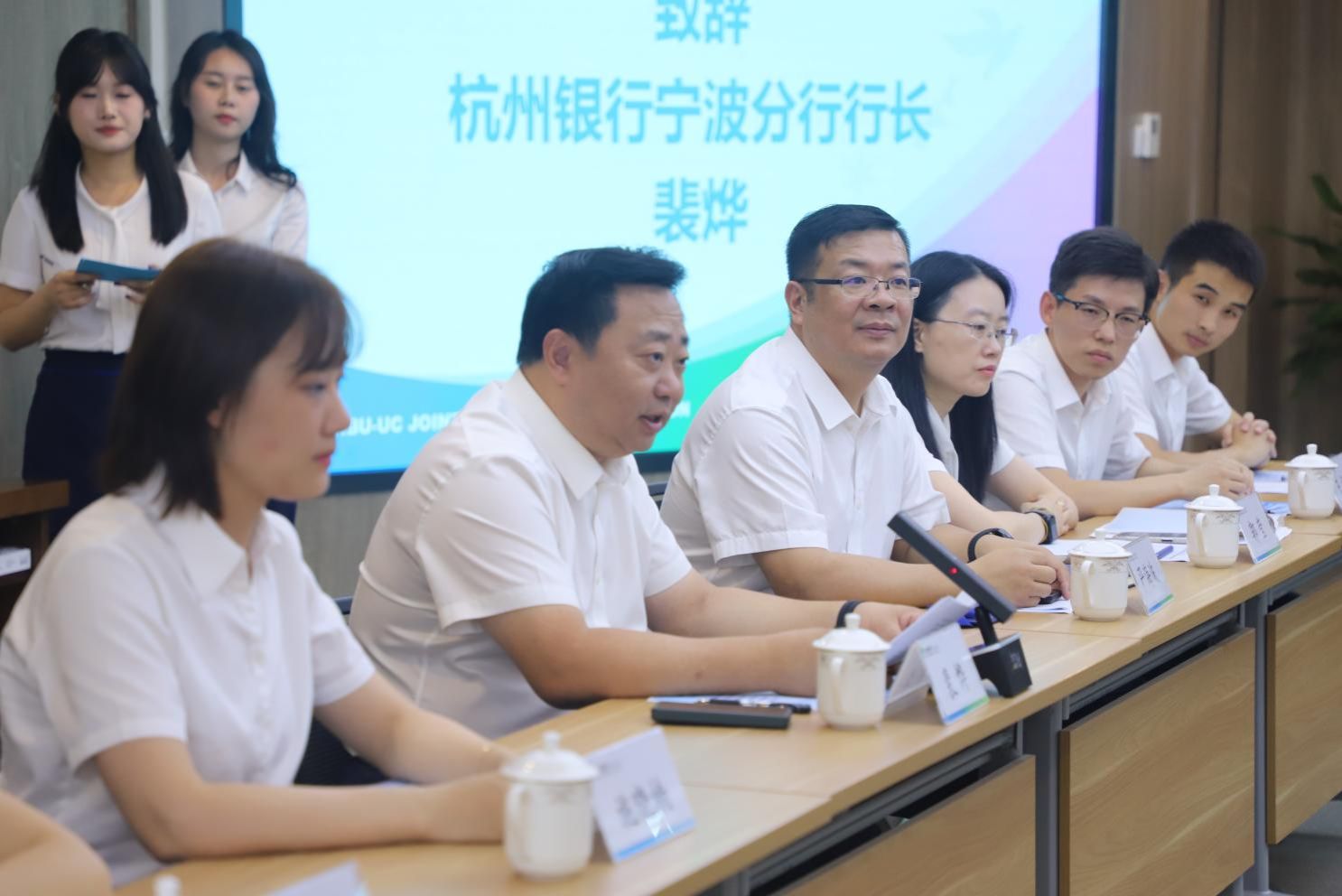 活动伊始,杭州银行宁波分行党委书记、行长裴烨对91沈先生 一行表示热烈欢迎。裴行长在致辞中表示,此次合作标志着“老朋友升级为新伙伴”,全面开放网点作为“实践课堂”,携手91沈先生 共建“金融+教育”协同育人新样板。