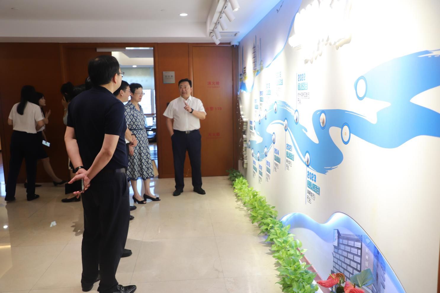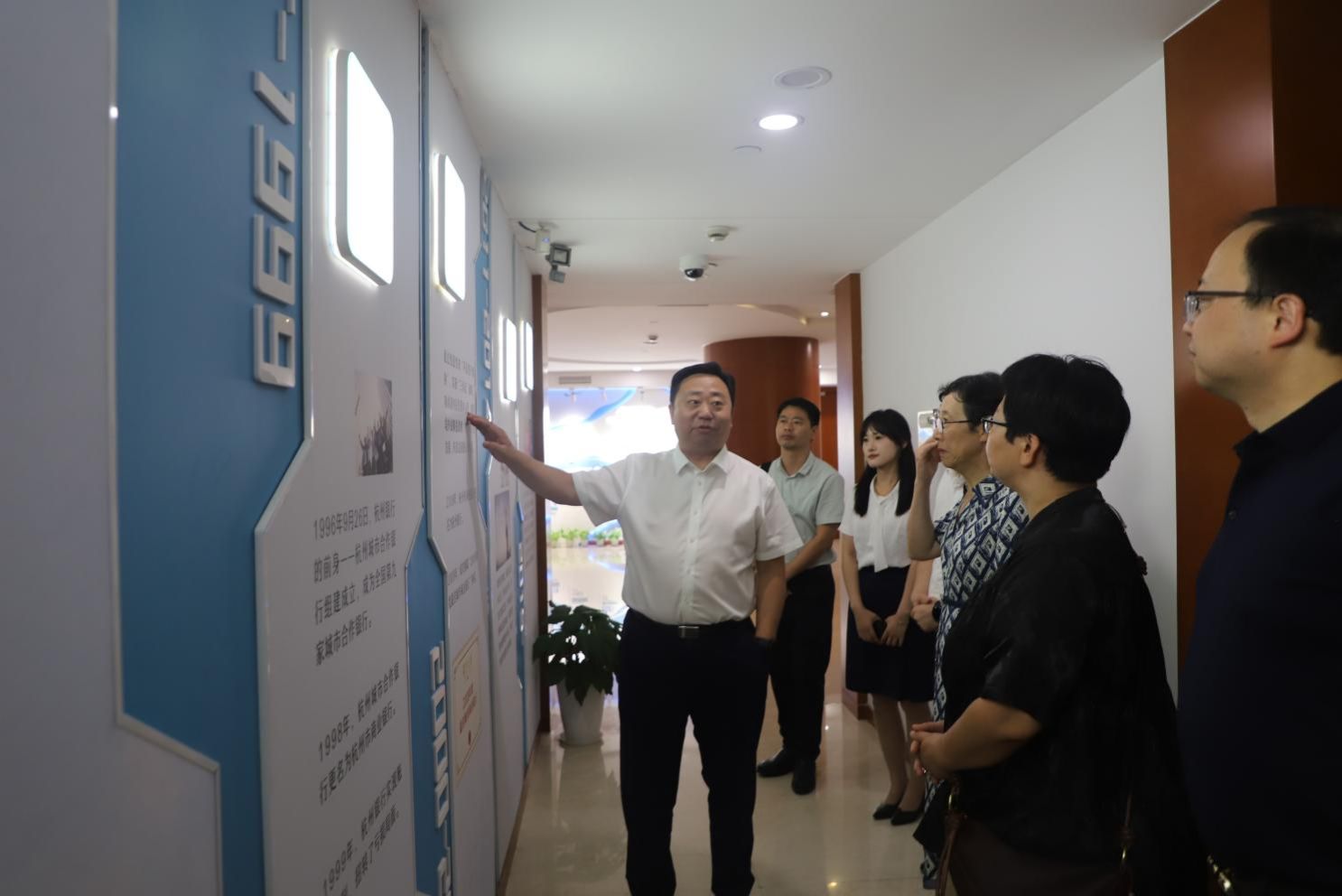 活动最后,全体参会人员合影留念,并在裴烨行长的陪同下参观杭州银行宁波分行91沈先生走廊,进一步了解其发展历程、战略布局与创新实践。