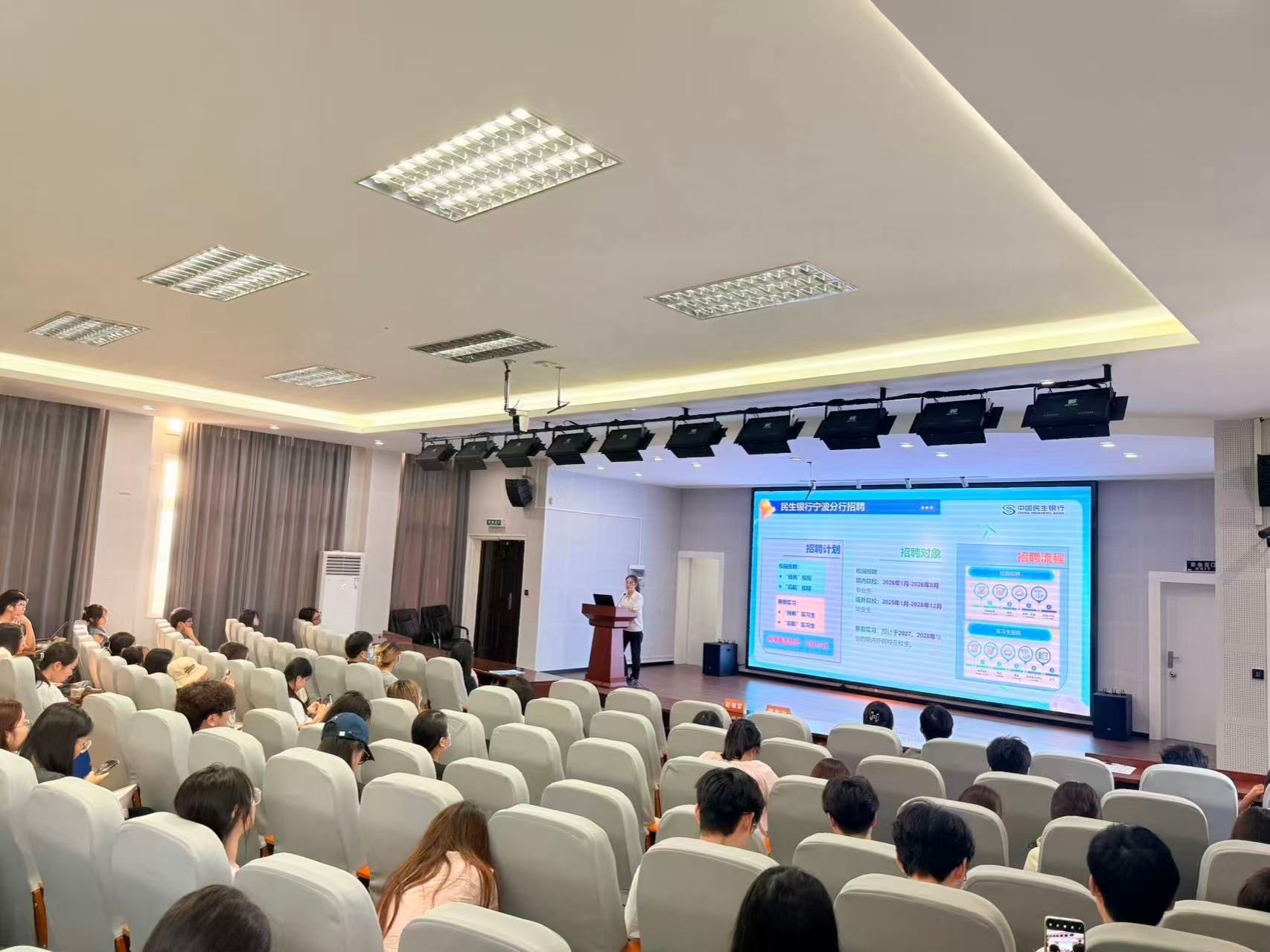 会上,民生银行宁波分行人力资源部详细解读了本次招聘的岗位需求、薪资待遇及职业发展路径,帮助同学们对银行的业务模式与职业发展空间有了更加全面的认识。