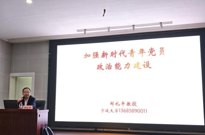 郑礼平教授长期致力于马克思主义中国化与党的建设研究,理论素养深厚,宣讲经验丰富。讲座中,他指出当前我国正处在实现中华民族伟大复兴的关键时期,在取得成就的同时仍面临着诸多风险挑战,而这对青年党员政治能力建设提出了更高的要求。他阐述了当前青年党员政治能力建设面临的挑战,并进一步提出了加强新时代青年党员政治能力建设的实现路径。