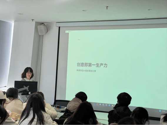 随后,创意设计部主管带来干货满满的AI应用实操分享。她结合集团业务场景,详细介绍了AI在视觉素材创作中的应用。另外,现场还演示了图生图、文生图功能,并分享了一些高效使用技巧。此外,还推荐了多样化模型资源以及实操方法,让同学们直观感受“AI工具+人工打磨”的协同高效模式。