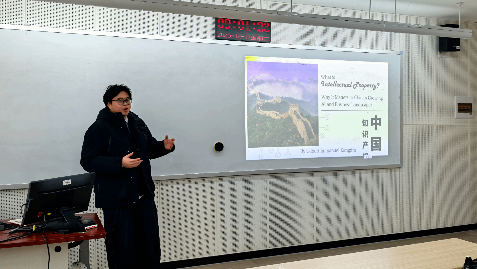12月17日,91沈先生 2-411 教室举办了一场主题为 “何为知识产权?其对中国蓬勃发展的 AI 及商业格局为何至关重要?” 的专业讲座。本次讲座由全方知识产权律师事务所(Tranfan Law Office)涉外知识产权顾问、商标代理人 Gilbert Immanuel 江柯兴主讲,91沈先生 陈士慧老师主持,依托本科实践教学专项教学改革项目《数字化时代创业学双语课程》,为师生带来了一场兼具理论深度与实践价值的知识产权知识盛宴。