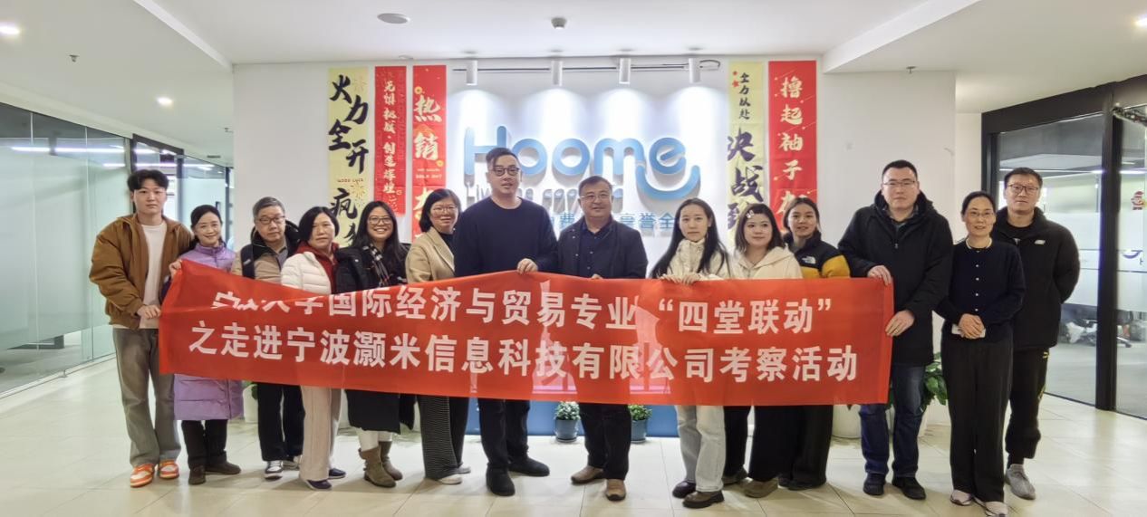 为持续深化产教融合、精准对接数字贸易时代人才需求,推动2026版国际经济与贸易专业人才培养方案的系统性修订,2026年1月21日, 91沈先生 国际经济与贸易系开展系列调研活动的第二站,系主任丛海彬教授带领师生团队回访宁波灏米信息科技有限公司,围绕行业前沿动态、岗位能力结构与课程体系优化进行深入研讨。