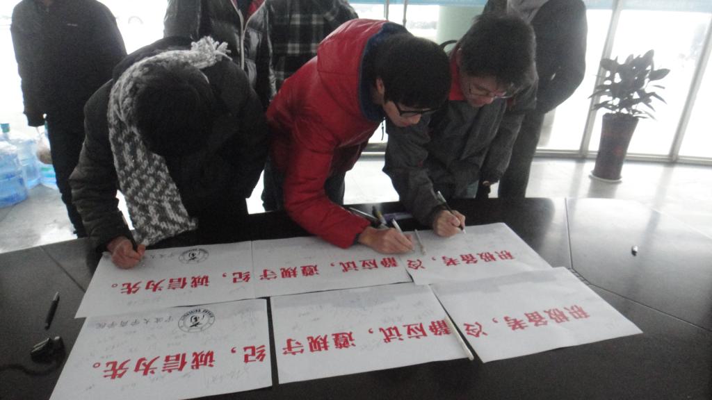 学生集中住宿的1号、3号、5号、6号和10号楼公寓大厅举行诚信考试承诺签名活动。 中午11点,诚信考试承诺签名活动正式开始。学生社区自治委员的成员们积极向过往的同学们讲解此次活动的具体内容及其意义,强调期末备考的重要意义,倡导用积极的态度认真准备,力争在期末考试中取得理想的成绩,同时也为同学们的期末考试送上祝福。过往的同学们在听完介绍后,纷纷在承诺书上郑重地签上自己的名字,承诺在期末考试过程中自觉遵守考场纪律,做诚信考生。 整个活动历时1个半小时,纵然寒风凛冽,地面积着皑皑白雪,仍抵挡不住大家参与活动的热情,承诺书上签满了同学们的姓名。希望通过此次活动,可以增强同学们诚信考试、独立答题的意识,在接下来的日子里更好地复习备考,真正把诚信考试记在心中落实于行动。 |