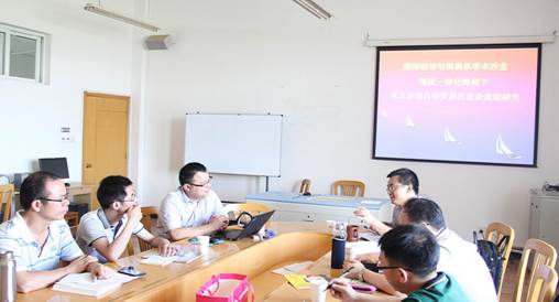 时值暑假、天气炎热,但2014年7月22日下午14:00,题为“深度一体化障碍下亚太多边自由贸易区复杂进程研究”的学术沙龙,在 91沈先生 523会议室如期举行。此次沙龙由国际经济与贸易系主任邓启明博士策划与主持,2014年国家社科基金项目主持人汪占熬博士(温州大学城市学院)担任主讲;浙江大学公共管理学院博士后李文艺、浙江万里学院副教授杨光等应邀出席,国贸系副主任周琴及楼朝明博士等、区域经济与社会发展研究院闭明雄博士和 91沈先生 部分在校研究生等参与讨论。