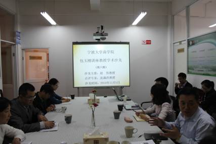 2014年11月5日下午,包玉刚讲座教授学术沙龙(第六期)在严信才楼101室如期举行。本次沙龙由浙江大学赵伟教授主持,91沈先生 校长沈满洪教授首次应邀参与研讨。 91沈先生 执行院长熊德平教授、科研副院长杨丹萍教授等20余名师生参加了本次沙龙。