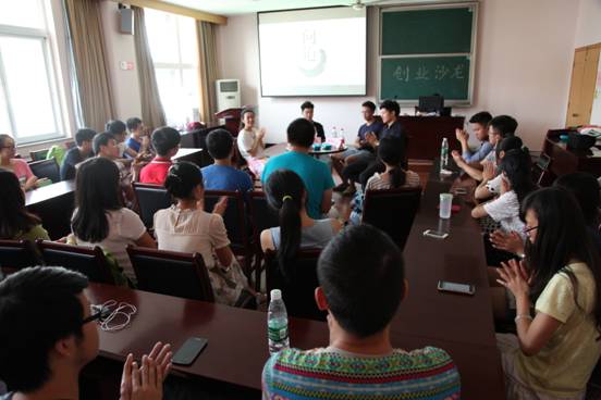 沙龙一开始,三位嘉宾纷纷讲述了自己的创业故事和心路历程。随后,三位嘉宾分别就“大学生创业起步难、压力大”、“如何在资金紧缺的情况下创业”等问题分别提出了各自见解,并与在场同学就如何做好创业准备、如何合理运用资金、如何做好团队经营等分享了经验。期间,王翼始终不忘“办法总比困难多”的坚定、黄忠杭敢于“认准路的方向,相信全世界都会为你让路”的勇气、以及江斌对“优质的产品和优秀的团队”的不懈追求让在场同学收获良多。最后,提问互动环节现场气氛热烈,嘉宾们回答了同学们关于创业团队的组建、微信营销的前景、电商行业的营销技巧等问题。
