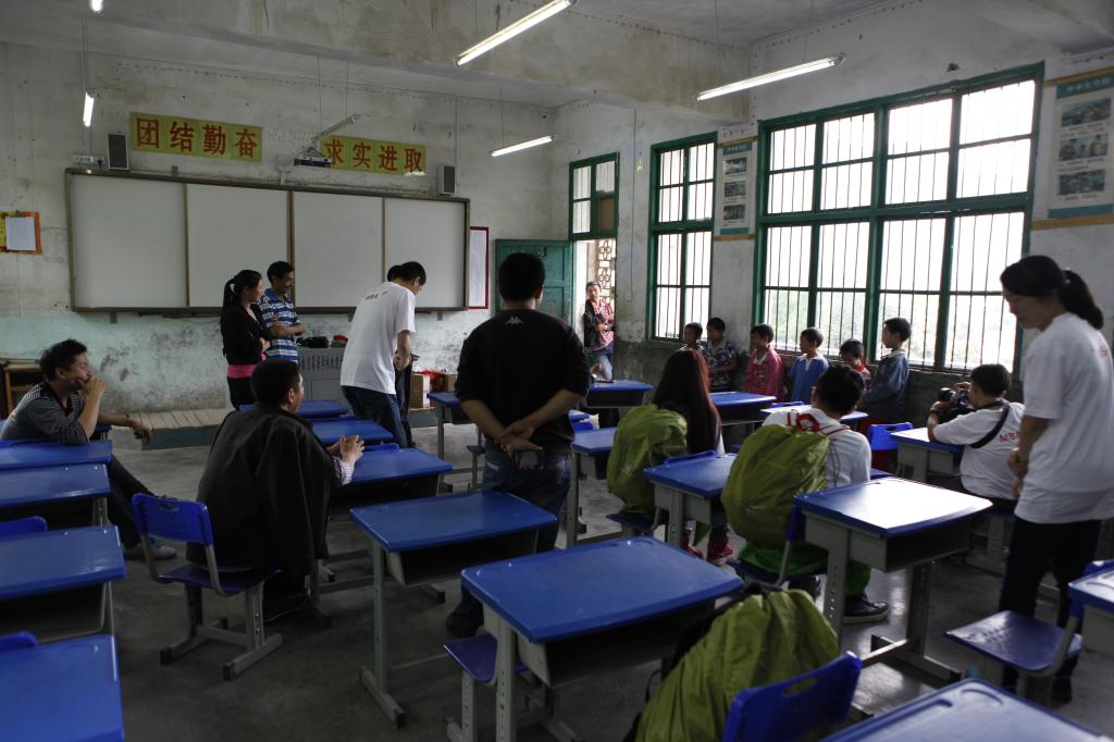 山路的颠簸曲折、沉重的帐篷、睡袋及携带的文具也没能档住大家前行的热情,老天爷也似乎受到了感染,而开了笑脸。“五峰土家族自治县属于贫困县,当地自然环境恶劣,多山林,经济发展长期滞后,大部分人都外出务工,所以只留下老人和小孩留守家中。” 包车司机介绍说,”本来这星期已经接连下了7天的雨了,还担心山路泥泞,而延误你们的行程呢,可没想到,你们的到来,雨反倒停了,哈哈哈……好事!”他爽朗的笑起来。露出大山里人特有的纯朴。