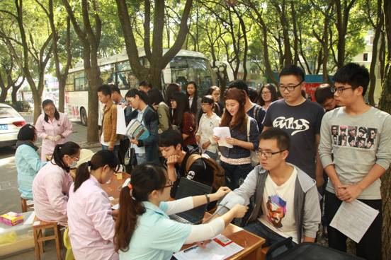 金秋十月,秋风送爽,为积极响应校红十字会无偿献血的号召,91沈先生 组织参加了10月24日中午在一餐对面举行的无偿献血活动,91沈先生 共计90余名学子(未包括在其他场次中参与献血的学子)报名参加了此次活动,为无偿献血事业奉献出了自己的微薄之力。
