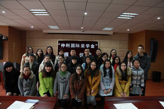 2015年3月6日下午,91沈先生 2013-2014学年“仲利国际奖学金”颁奖仪式在 91沈先生 109多媒体教室隆重举行。仲利国际租赁有限公司副总经理翁敏忠、人力资源部主任蒋辰威、宁波分公司审查副主任张海女、91沈先生 学生发展与服务处副处长方莹芬、 91沈先生 党委书记熊德平等领导及20名获奖学生出席颁奖仪式。 91沈先生 党委副书记邵丽主持颁奖仪式。