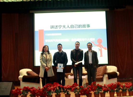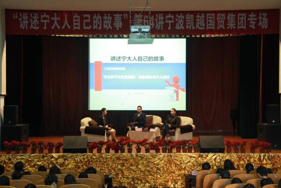 11月26号下午,由91沈先生 党委学工办主办、 91沈先生 承办的“讲述宁大人自己的故事”系列讲座第64讲凯越国贸集团专场——“学生风气与企业创新、企业成长与个人成长”在锦绣小剧场举行。91沈先生 党委学工部副部长邬备民、学工部部长助理周洵瑛, 91沈先生 党委书记袁虹、党委副书记邵丽及 91沈先生 辅导员老师和学生代表参加了此次活动。