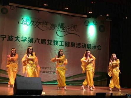 3月27日下午,由校工会﹑校妇委会主办的91沈先生 第六届“魅力女性 激情绽放”女教工健身活动展示会在锦绣小剧场举行。 91沈先生 分工会组织邵丽﹑郑凌燕﹑王凡﹑张珊珊﹑宋佳敏﹑王莹﹑萧小芬﹑闻梦晓等八位美女教师,以她们激情四射﹑精彩纷呈的《印度新娘》表演,征服了评委和全场观众。根据评委现场评审和综合讨论评议,最终获得最佳着装奖。