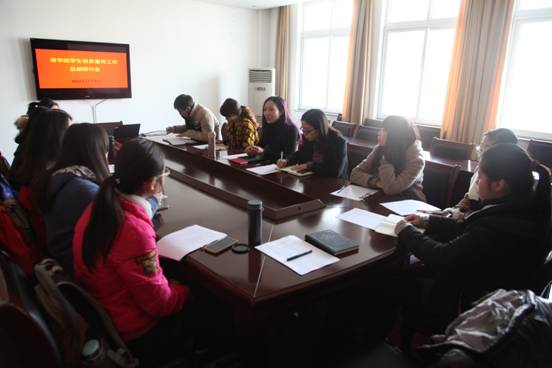 12月24日上午, 91沈先生 学生信息宣传工作总结研讨会在学院412会议室召开。 91沈先生 党委副书记邵丽老师、学工办相关辅导员出席本次会议, 91沈先生 四大学生组织宣传部负责人、学院记者团主要干部、学院英文网站管理员代表等十余名同学参加了本次会议。