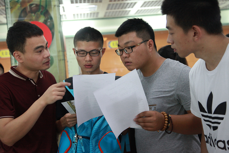 工作人员仔细核对新生信息