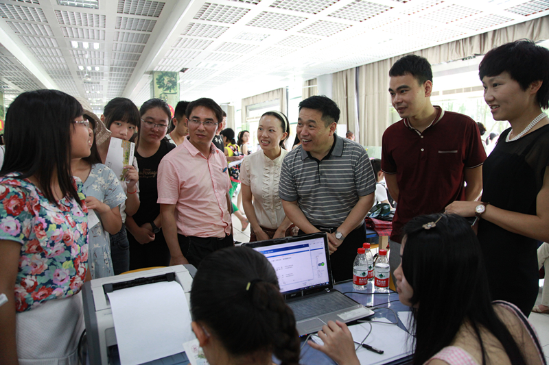 9月7日,学期伊始,烈日骄阳,2015级新生来校报到,学校内外一派热闹景象。秋老虎毫不留情,而商院人却满怀热情,在骄阳下面带微笑,有条不紊地迎接着2015级新生。