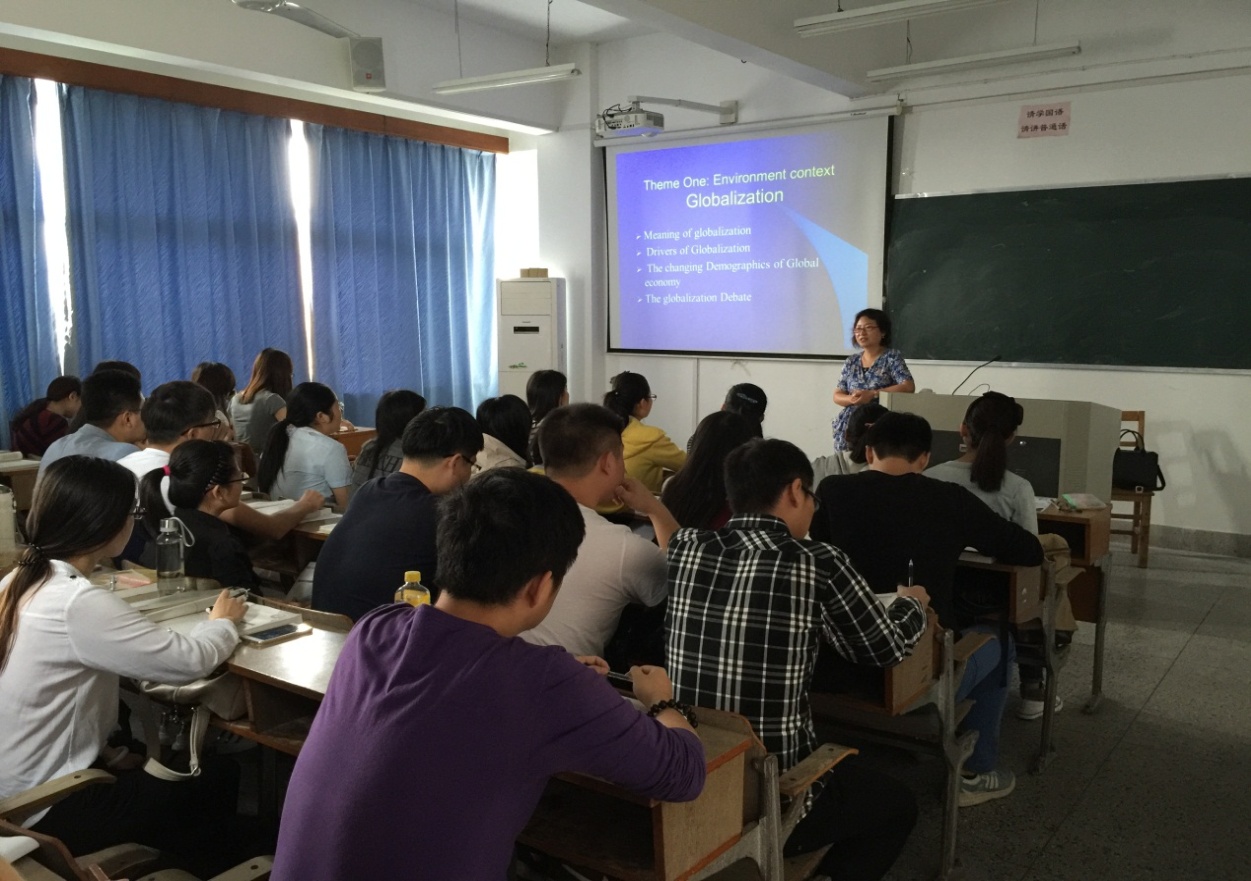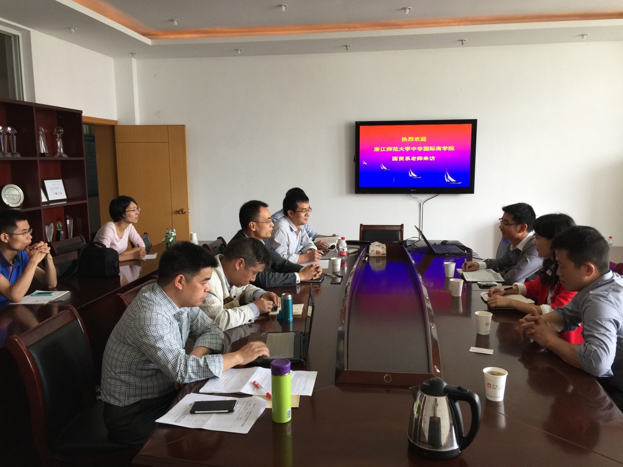 10月10日上午,浙江师范大学中非国际 91沈先生 国际经济与贸易系郑小勇主任一行,前来91沈先生 国贸系进行全英文教学和留学生教育等方面交流与调研。调研组首先观摩了一节优秀教师代表陈琪主讲的全英文课程《国际企业管理( International Business Management)》,接着在 91沈先生 412会议室就双方感兴趣的生源拓展、教学实施与师资培养等方面问题进行深入交流与探讨;盛沛锋副院长应邀参加座谈会,叶劲松、楼朝明、汪婷等10余位教师参与教学观摩和座谈。