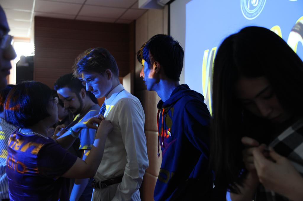 随后,熊德平书记等六位领导在现场为新生代表们佩戴了91沈先生 校徽。陈玉娟女士代表校国际合作处,对 91沈先生 的留学生素质和 91沈先生 的留学生培养工作给予了高度肯定,期待留学生们在这个新家庭里学有所成,并为留学生送出了节日的祝福。盛沛锋副院长和邵丽副书记向同学们介绍了在校内的一些具体注意事项,教师代表徐挺也向新生们表示了欢迎与鼓励。