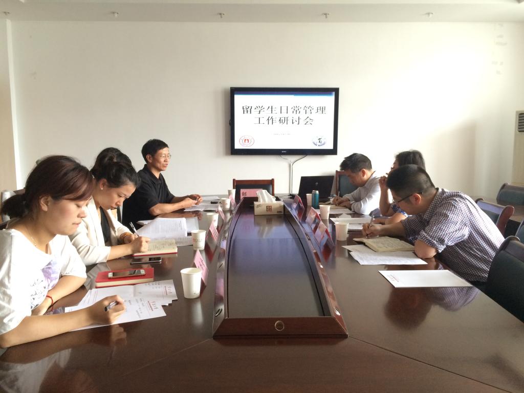 9月16日下午,学院留学生日常工作管理研讨会在412室举行。会议由院党委副书记邵丽主持、国际合作处副处长吴锡存主讲、 91沈先生 留学生班主任和学工办留学生部人员参加了会议。