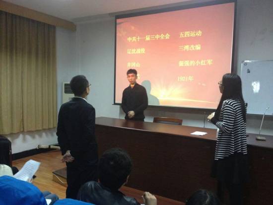 11月20日晚, 91沈先生 研究生党支部“学党史、修党性、当先锋”党团知识竞赛活动在 91沈先生 418正式举行。这次活动是由91沈先生 党委主办,研究生15国际贸易学党支部、国际商务学党支部、企业管理学党支部、金融学党支部以及联合党支部承办。研究生辅导员、研究生15联合党支部书记陈彬和研究生秘书张珊珊出席本次活动, 91沈先生 党员之家成员以及研究生15级全体党员、积极分子和部分团员参加了本次活动。
