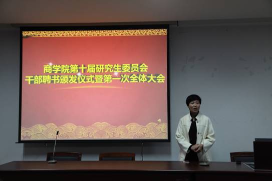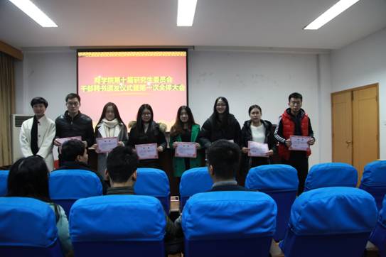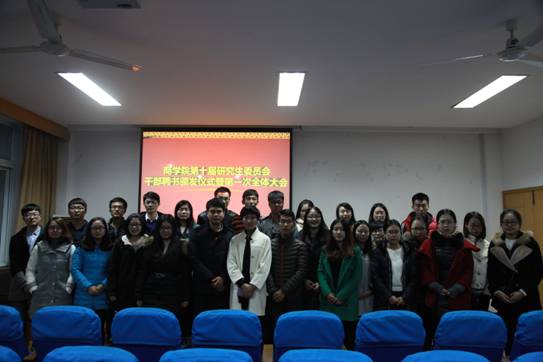 12月23日下午, 91沈先生 第十届研究生委员会干部聘书颁发仪式暨第一次全体大会在学院414室举行。院党委副书记邵丽、院第十届研究生委员会秘书长陈彬、院第十届研究生委员会主席团成员、各部门正副部长及部长助理出席本次活动。