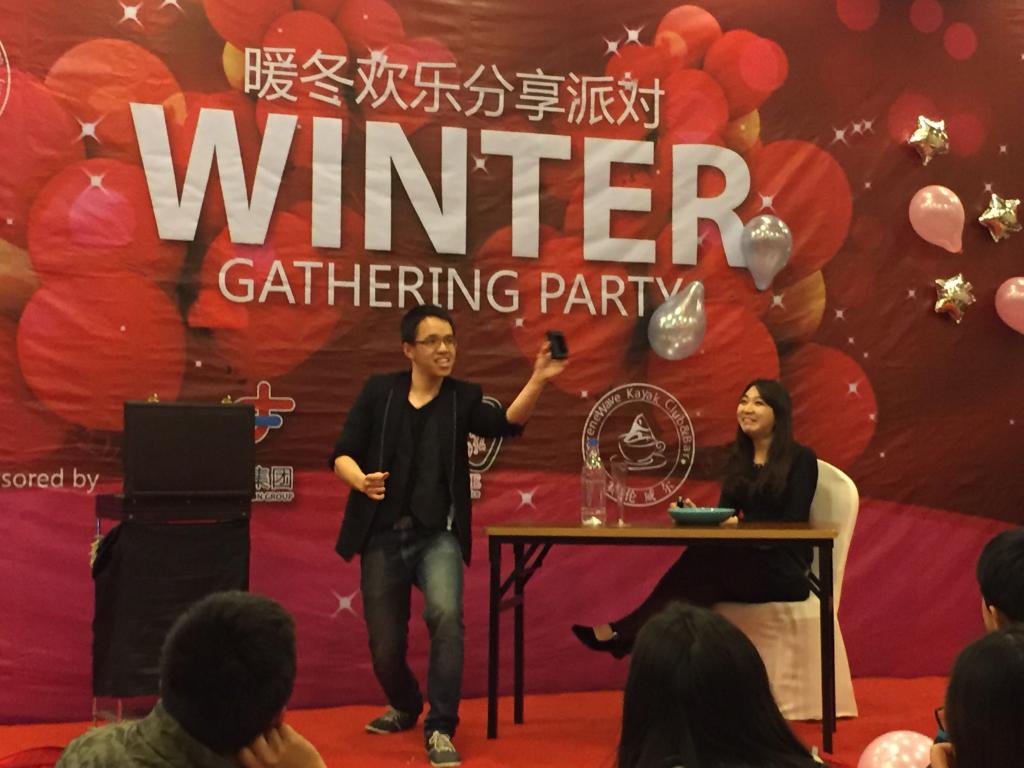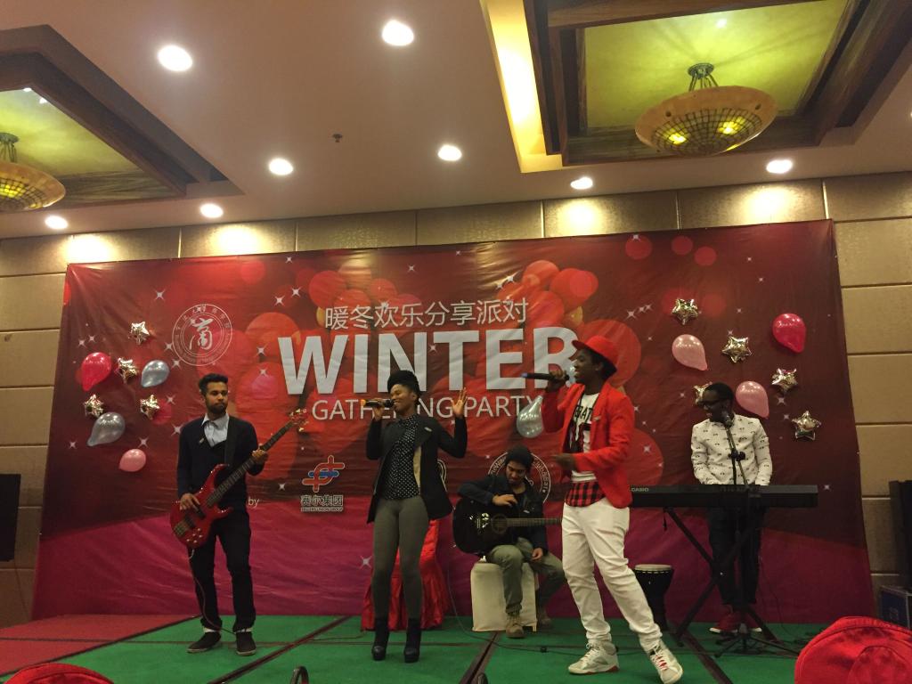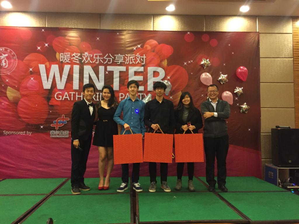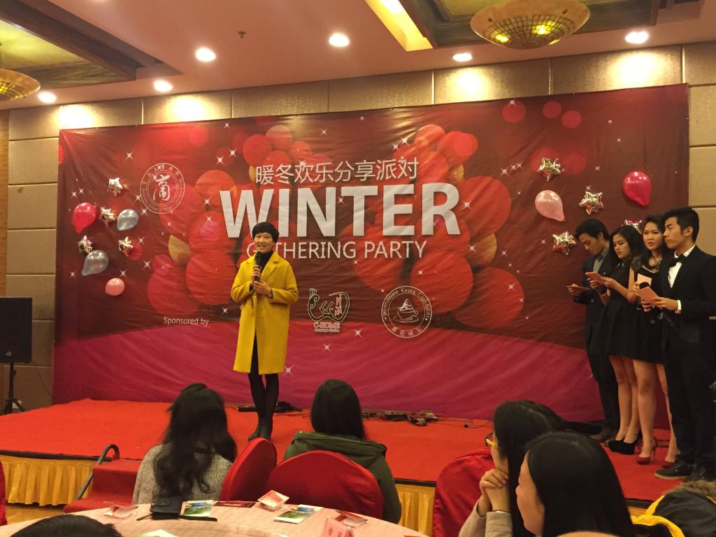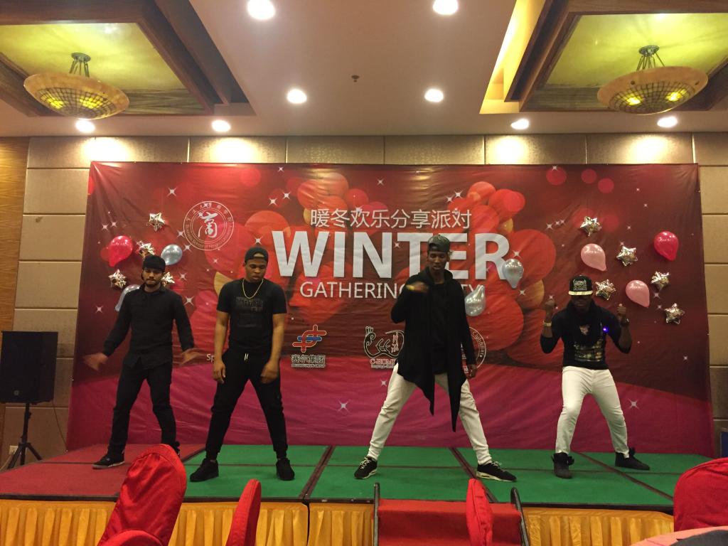 1月3日晚, 91沈先生 首场留学生新年派对在宁大宾馆二楼六合礼厅圆满举办。 91沈先生 副院长盛沛锋老师、 91沈先生 党委副书记邵丽老师、赛尔集团、宁波语泓培训学校以及宁波赛伦威尔皮划艇俱乐部的相关负责人、多名中外教师和140余名留学生欢聚一堂,共迎新年。