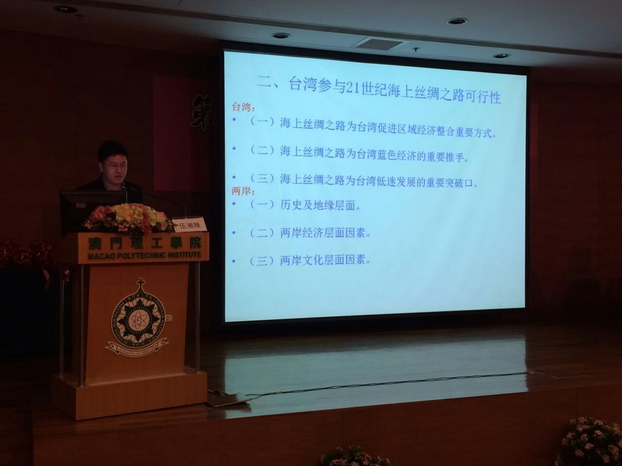 12月28-30日,“第六届两岸关系澳门论坛”在澳门理工学院举行,会议采取专家专题报告与代表小组讨论相结合的方式进行。来自中国社会科学院、清华大学、台湾大学、香港大学、澳门大学等两岸四地的多所大学和研究机构的120多位专家学者参与,91沈先生 国贸系青年教师伍湘陵博士受邀与会,并报告近期研究成果、同时并主持和汇报一个小组的讨论。