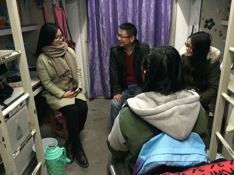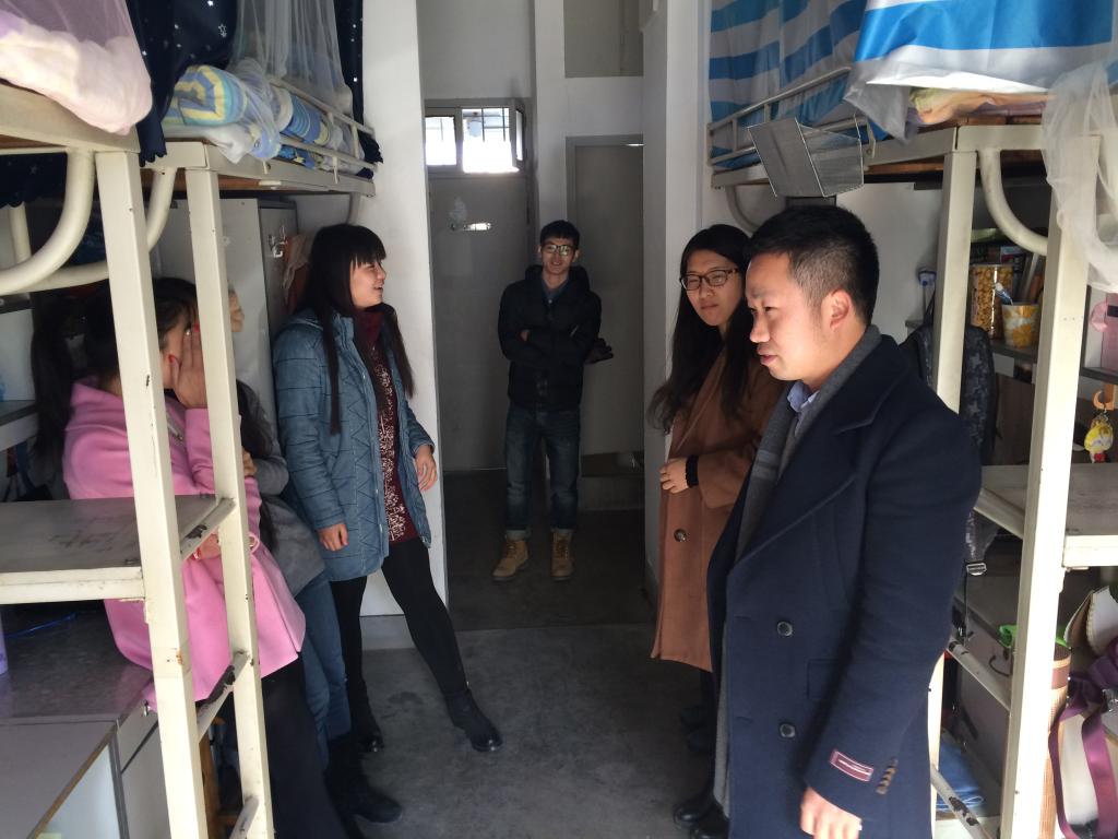 班主任们在走访过程中仔细询问了同学们近期学习和生活情况,就同学们遇到的问题给予了悉心指导,鼓励同学们认真学习,积极迎接即将到来的期末考试,提醒同学们对自己的大学学习生活多做规划。此外,还特别对学生寝室卫生情况进行了进一步了解,叮嘱同学们要时刻注意保持寝室干净和整洁,养成良好的行为习惯,并认真指出同学们没注意到的一些细节问题,鼓励同学们积极营造干净整洁、文明有序的寝室文化。班主任们深入寝室的悉心指导和交流帮扶让同学们倍感温暖。在走访过程发现学院寝室整体面较好,女生寝室整体较好,装扮各有特色,东西多而不乱,男生寝室大部分是混合寝室,寝室内整体较为规整,学习氛围浓厚;但也存在楼道传单乱飞、公共卫生区零乱、垃圾角落堆积等方面尚待提高,这些将在接下来的学院文明寝室创建过程中加以整治和提升。