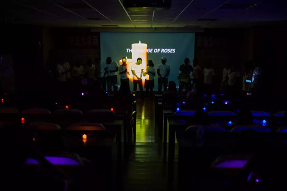 6点左右,留学生们抵达 91沈先生 。纪念仪式在集体合照后开始。在黑暗的教室中,每位参与者一盏盏点亮了手中颜色各异的电子蜡烛,随着蜡烛的点亮,教室内的氛围立刻开始变得宁静而肃穆。这些蜡烛寄托着纪念者对亡者的追思,更代表着对未来的希望。接着,22名留学生代表上台用英语、法语和卢旺达语宣读了22条希望留言,表达卢旺达人民对振兴祖国和建立安全繁荣的未来的决心。随后,美妙的音乐声响起,5名卢旺达同学上台以极富感染力的演绎展示了一出舞台剧,描述了战后饱受摧残的卢旺达民众心灵上所受到的痛苦和伤害,表现了伟大民众的坚强与包容,让在场的观众无不为之动容。最后,卢旺达学生现场诵读了在屠杀中遇难的100个受害人的名字。这每个名字的背后都代表着一个曾经鲜活的面孔,和一个家庭。每一个名字都警醒着世人这段血淋淋的历史。