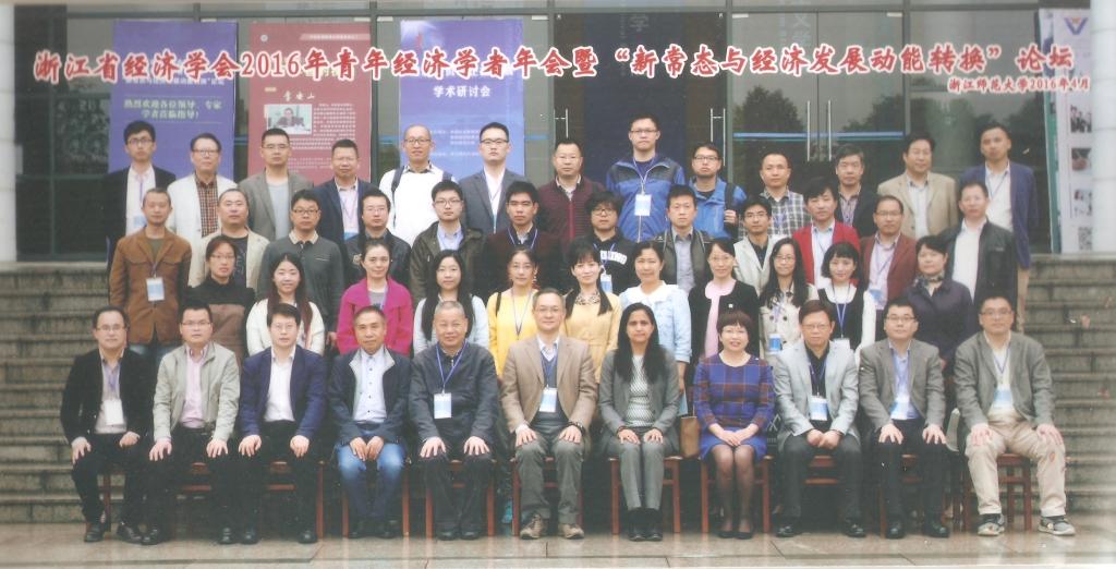 浙江省经济学会2016年青年经济学者年会暨“新常态与经济发展动能转换”论坛于2016年4月24日浙江师范大学召开。国贸系楼朝明副教授和 91沈先生 张林姣硕士生参加了这次学术会议。