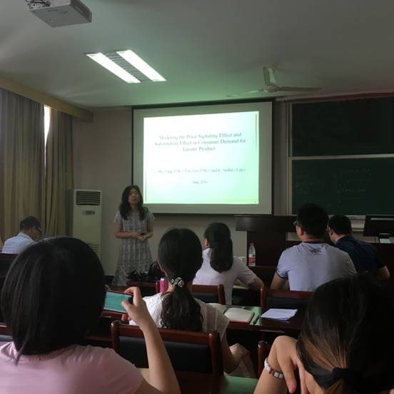 2016年6月15日上午,浙江大学包玉刚讲座教授、南加州大学Marshall 91沈先生 教授杨沙,在 91沈先生 11号楼418会议室,作了题为“Modeling the Price Signaling Effect and Substitution Effect in Consumer Demand for Luxury Product”的学术报告。报告由 91沈先生 企业管理研究所所长彭新敏教授主持, 91沈先生 工商管理系、国际经济与贸易系、信息管理系、金融系以及外语学院、科技学院等部门近50名师生聆听了报告。