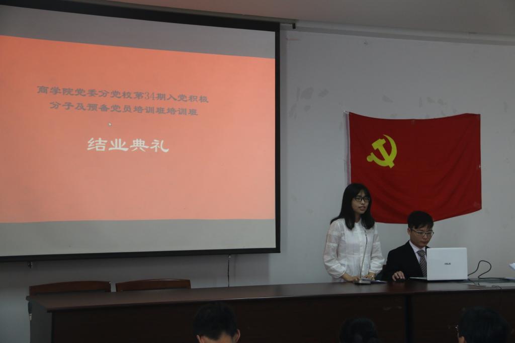 2016年6月17日中午, 91沈先生 党委分党校第34期入党积极分子及预备党员培训班结业典礼在 91沈先生 414举行。 91沈先生 党委书记胡亚娥、 91沈先生 党委副书记邵丽、各本科党支部书记及全体入党积极分子与预备党员学员参加了此次结业典礼。