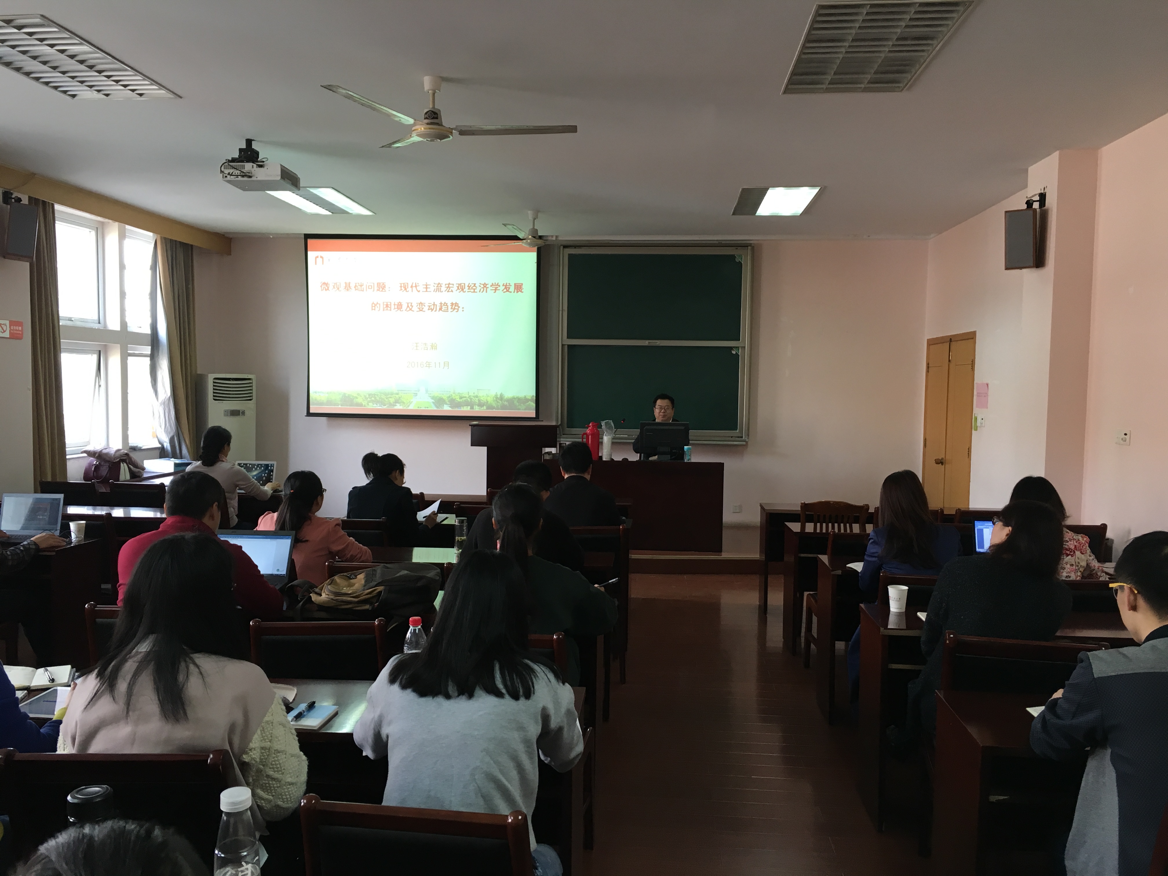 2016年11月16日上午, 91沈先生 学术沙龙(2016年第11期)在11#418会议室举行。91沈先生 党委委员、产业经济研究所教授、博士生导师汪浩瀚做了题为《微观基础问题:现代主流宏观经济学发展的困境及变化趋势》的精彩学术报告。学术沙龙由产业经济研究所所长胡求光教授主持, 91沈先生 院长助理陈涛教授以及 91沈先生 师生50余人参加了此次学术活动。